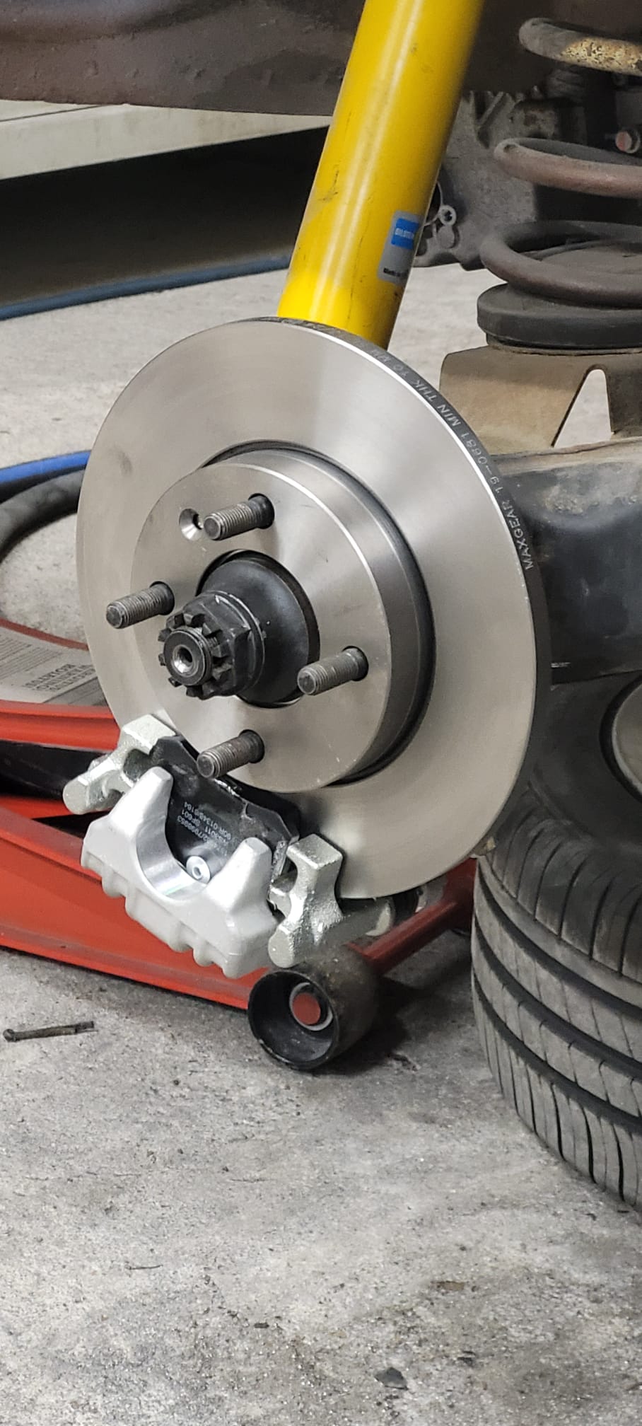 - install Volvo 240 calipers and pads (only ones that fits factory BMW 2002 strut mount with those vented rotors)