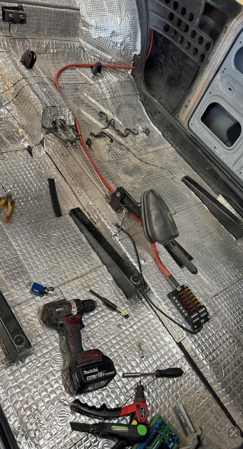 - Rear HV Junction box, charger wired, amplifiers, subwoofer, trunk flooring