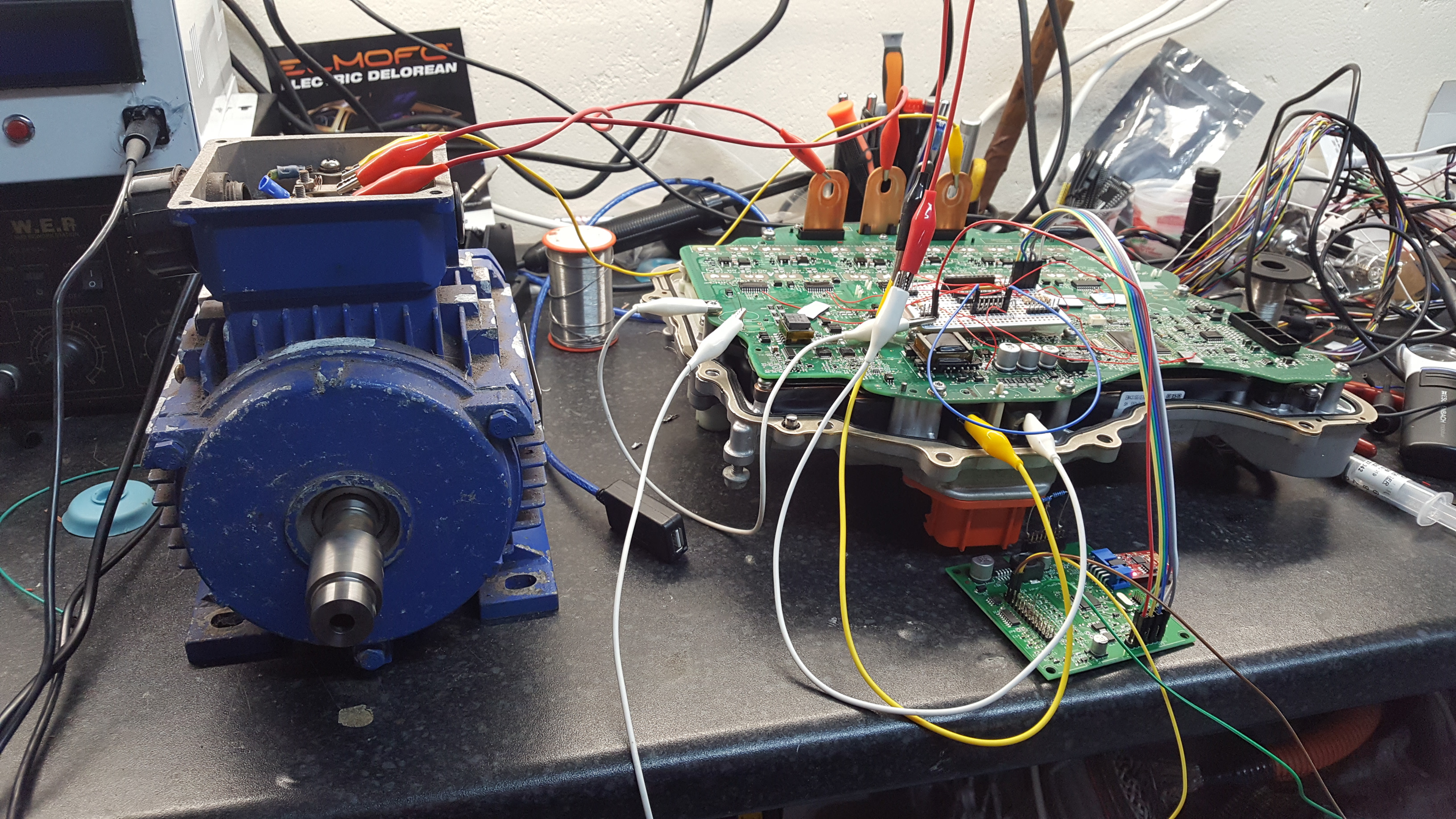 First spin of a motor using the rear drive unit inverter. Switching at 17.6khz.