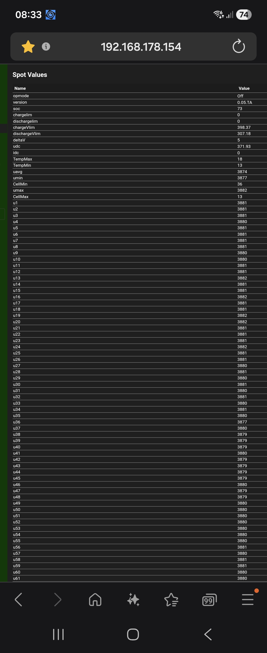 After a night, cell voltages are back ...