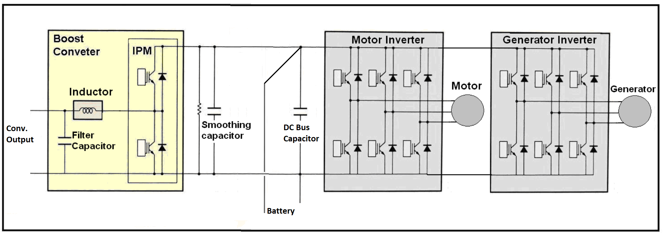 I am more interested in how to use inverter to drive MG2 power stage AND use MG1 to charge HV battery through inductor.