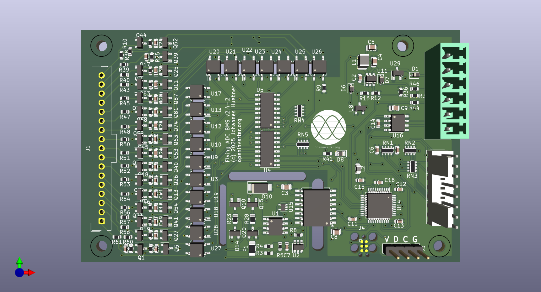 I envision basically the same design, but extra cell tap and i2c headers for a sub board made out of single sided aluminum core with power fets and parallel balance resistors, same opto gate layout and i2c io expander to connect each cell to balancing resistors, maybe some thermal monitoring to throttle as needed.
