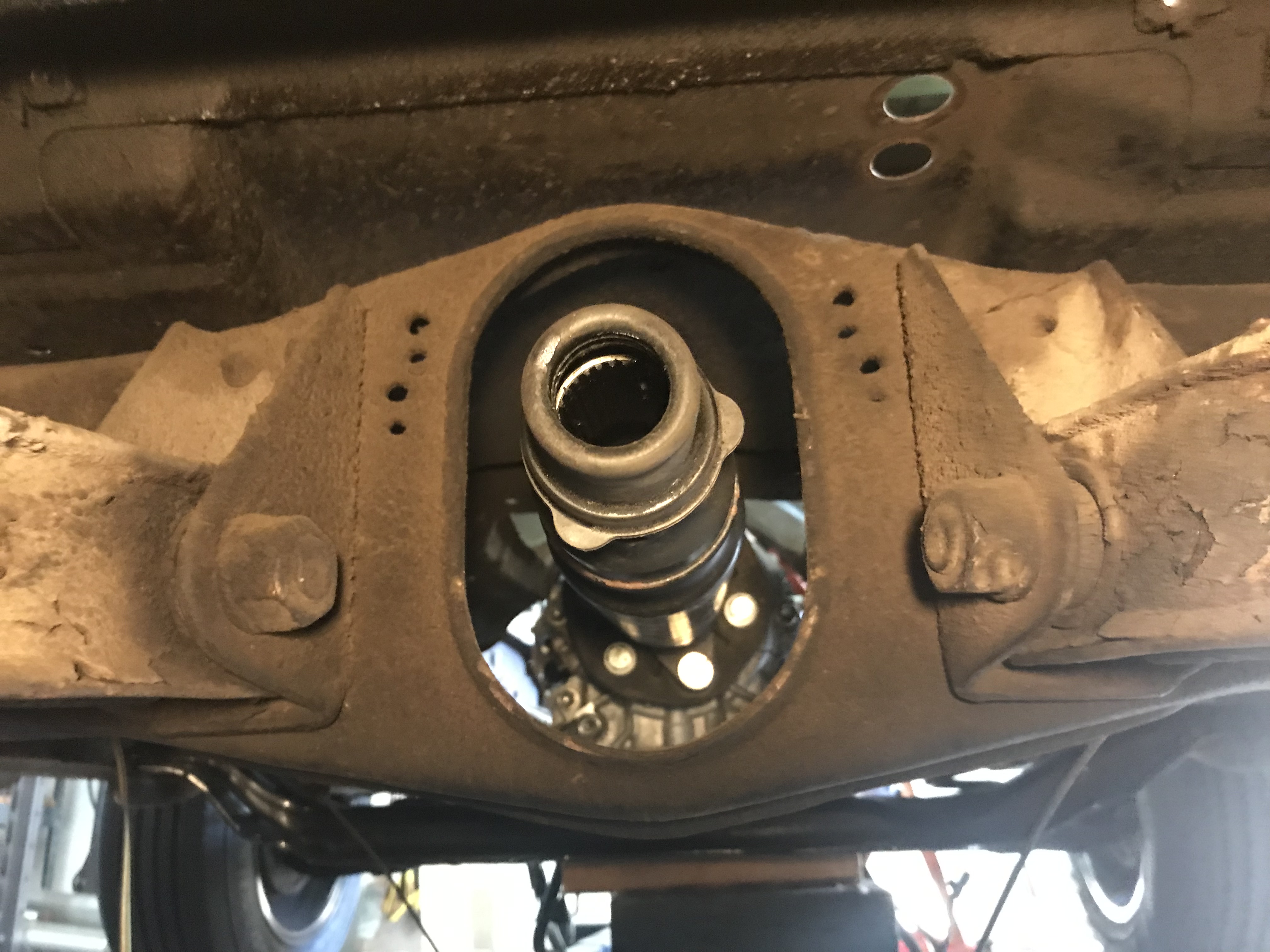 I got the stock OEM Lexus GS450h two piece drive shaft so I started to work on the middle donut support mount, I believe it's crucialistic that the short shaft is perfectly in line with the transmission