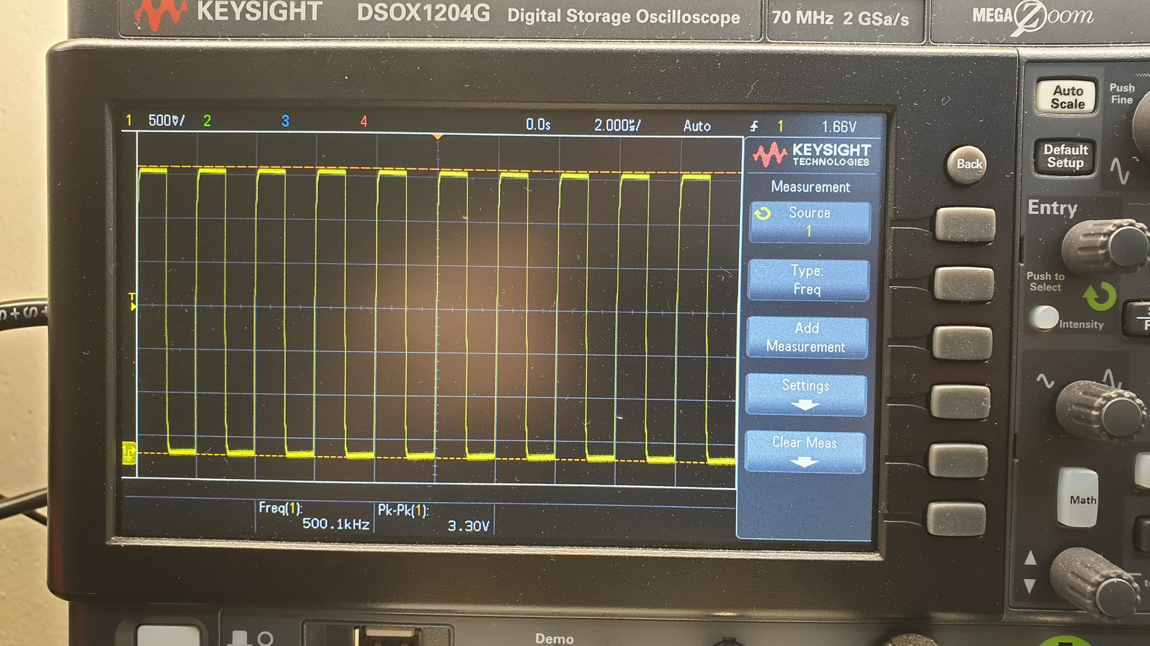 About as close to 500khz as we can get I reckon. Scope is calibrated so should be accurate.