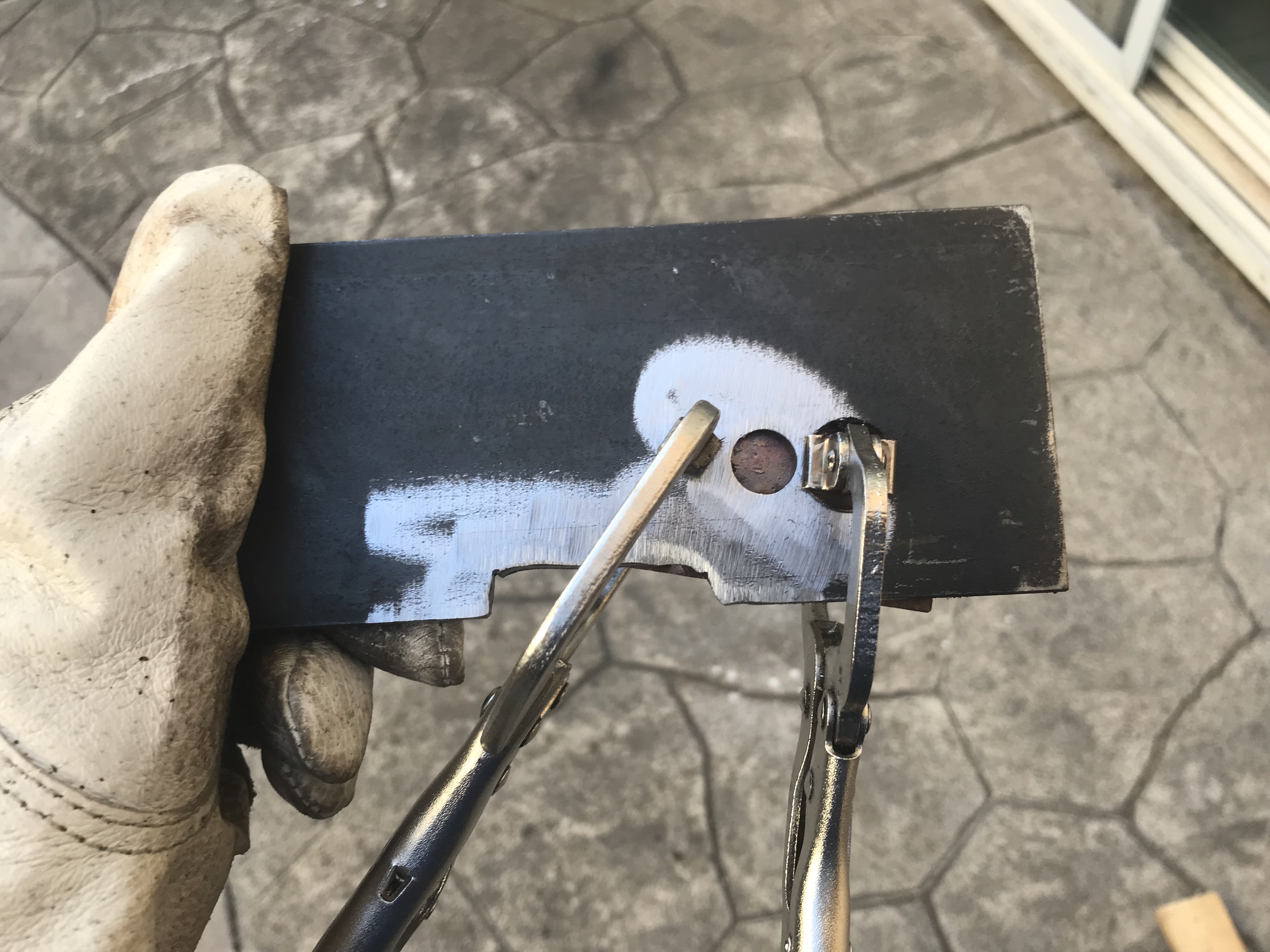 top tip on fillin in them holes, anything bigger than tiny I like to use some backing plate on it, this is a flattened out piece of copper pipe you can source at your local plumbing supply, works great as the filer rod won't stick to it
