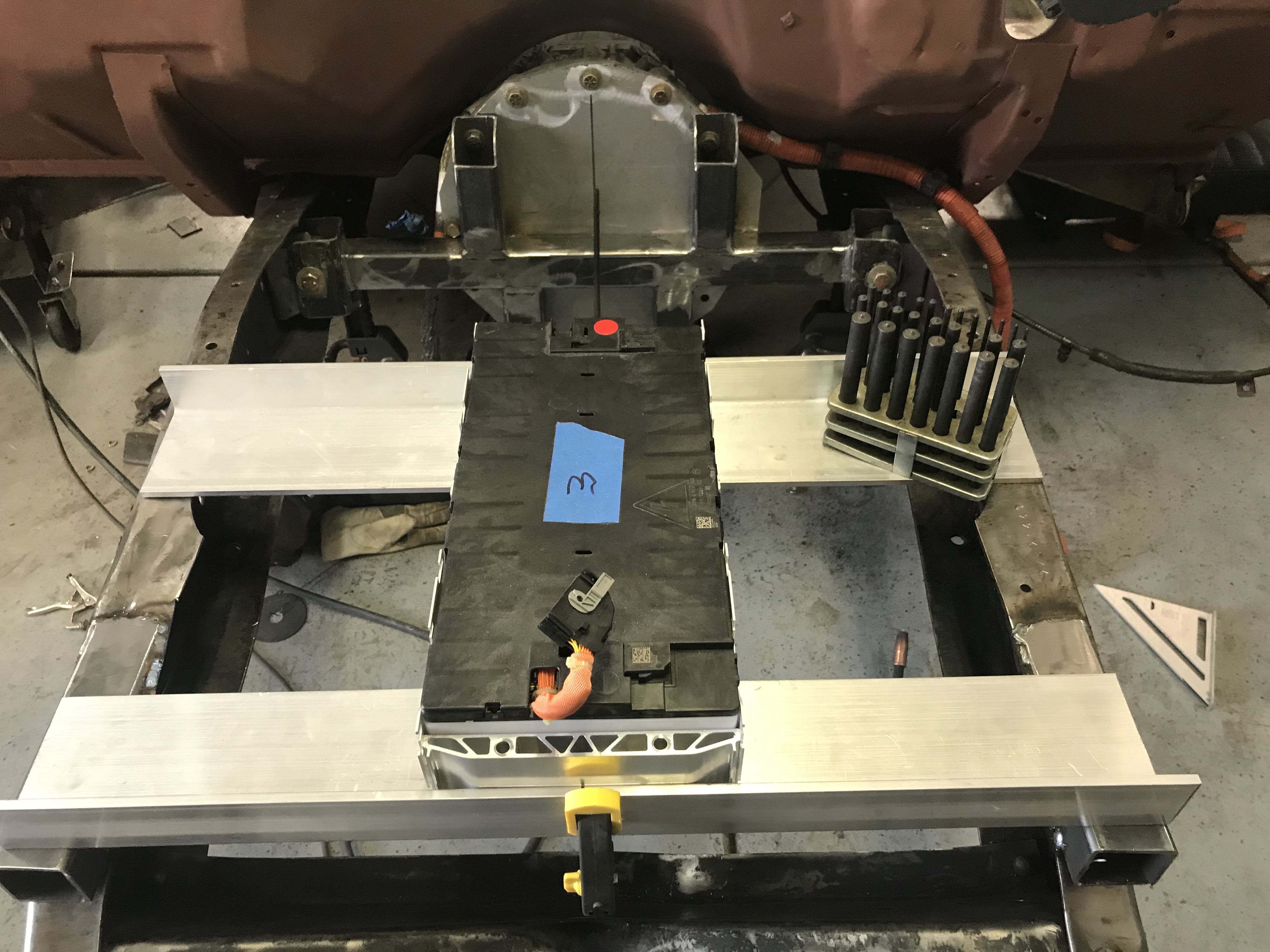 so here's a peak looksee what we are going for, I don't even know if that Tesla Model 3 battery charger / DC-DC converter combo unit [ahem, sorry Power Conversion System, PCS] is laying on there right side up or upside down, (you tell me, ha ha)