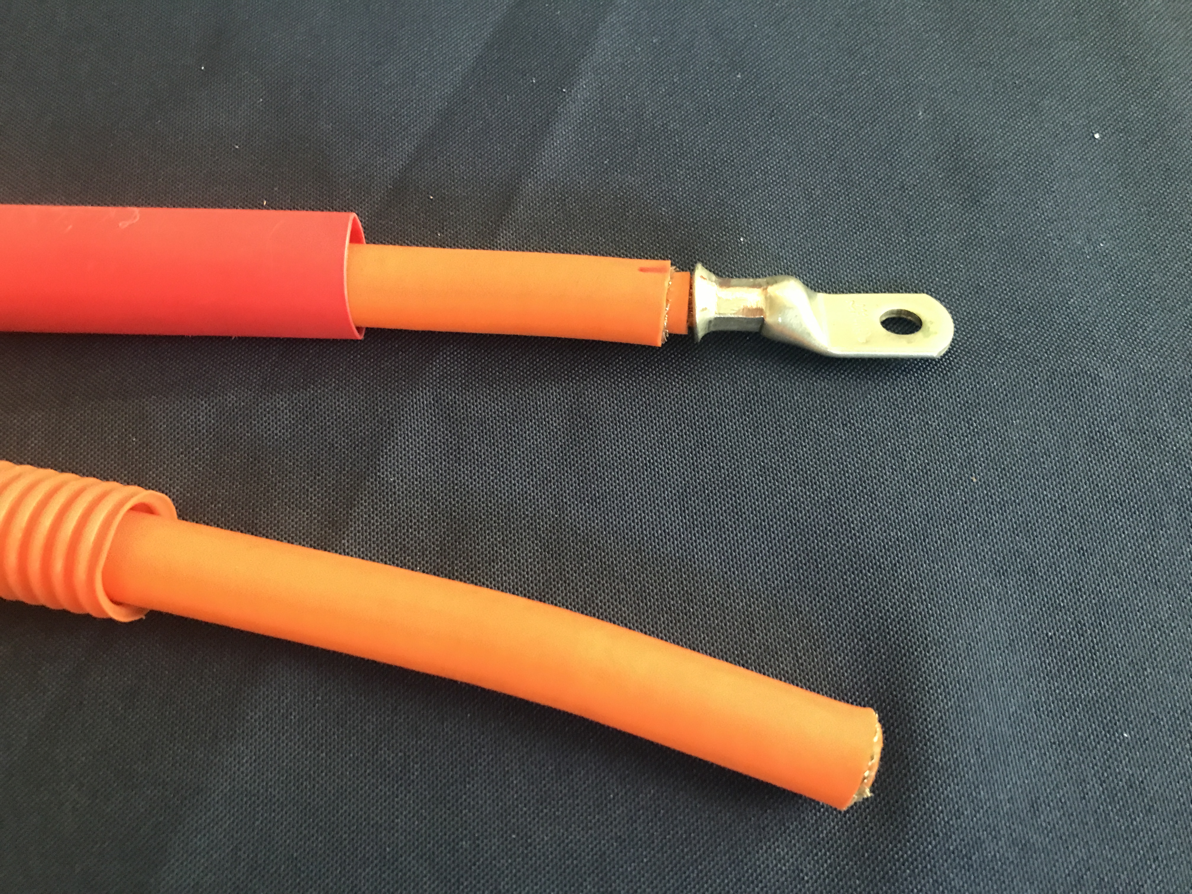 Nice, but I have a small dought: The orange cable has a copper shield, and I guess this shield is (or should be) grounded. In the pictures above the distance between the "hot" metal part and the copper shield seems quite small, even with the heat shrink it feels risky to me, that isolation is too bad. Just thinking what happens if you move out from the underground parking into hot, wet summer air. Condensate everywhere. Not a nice thought ;-)