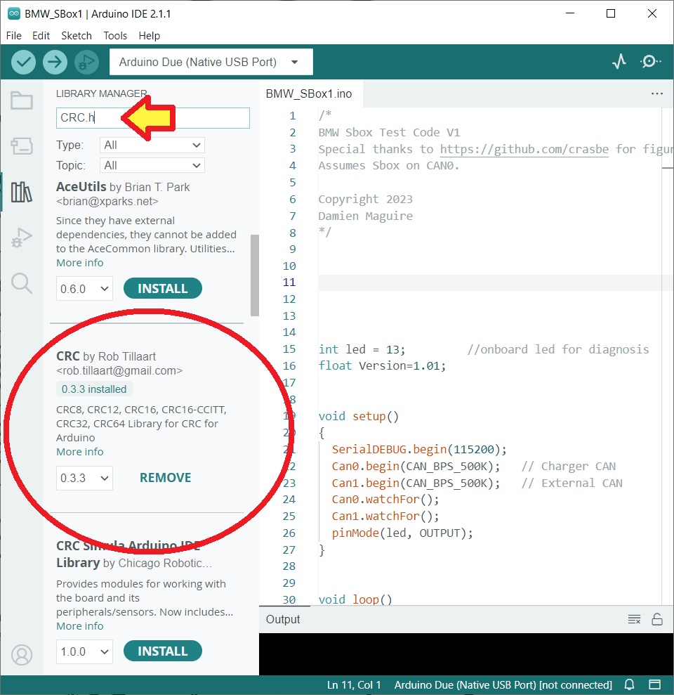 anyway I went to Tools \ Manage Libraries and just typed CRC.h and installed the one with some dudes name next to it, and whalla that worked