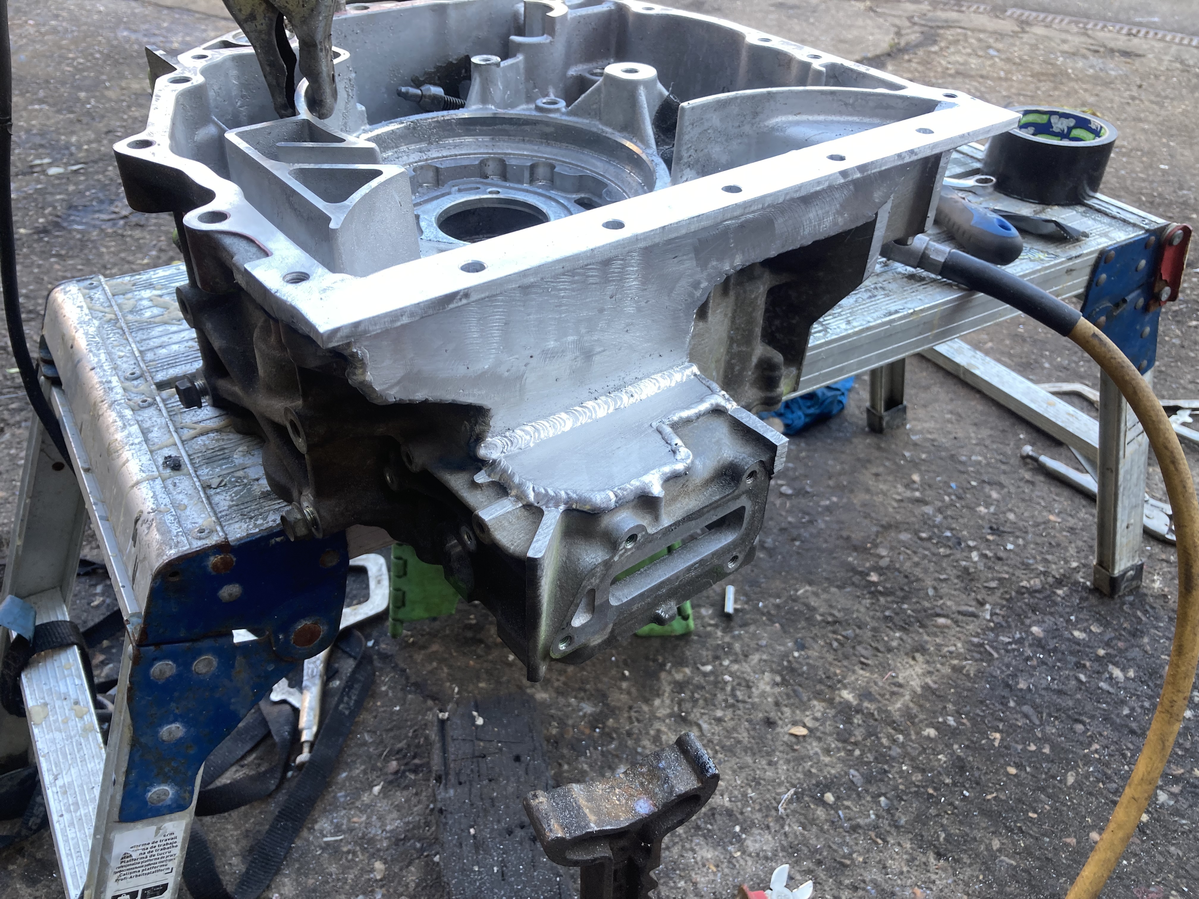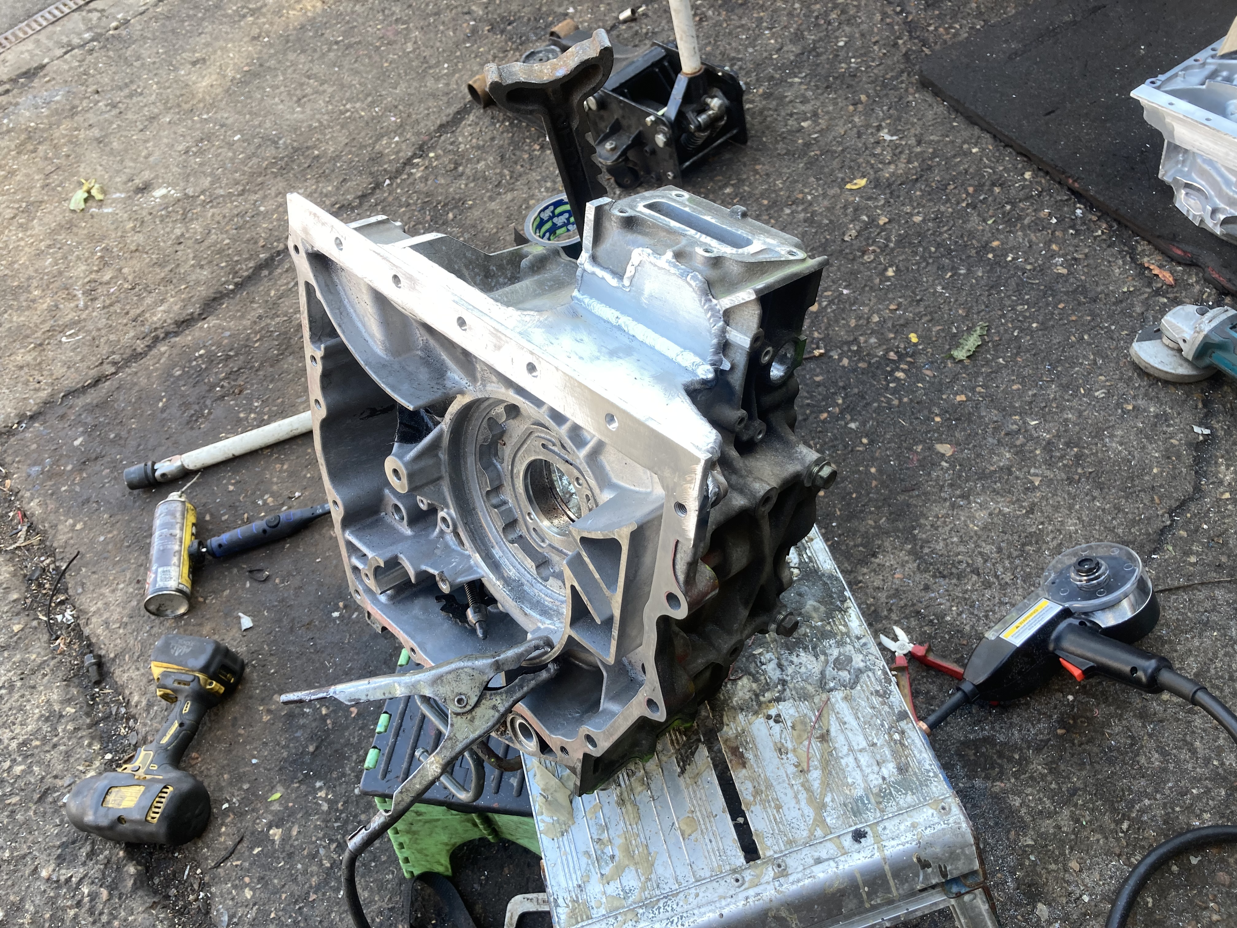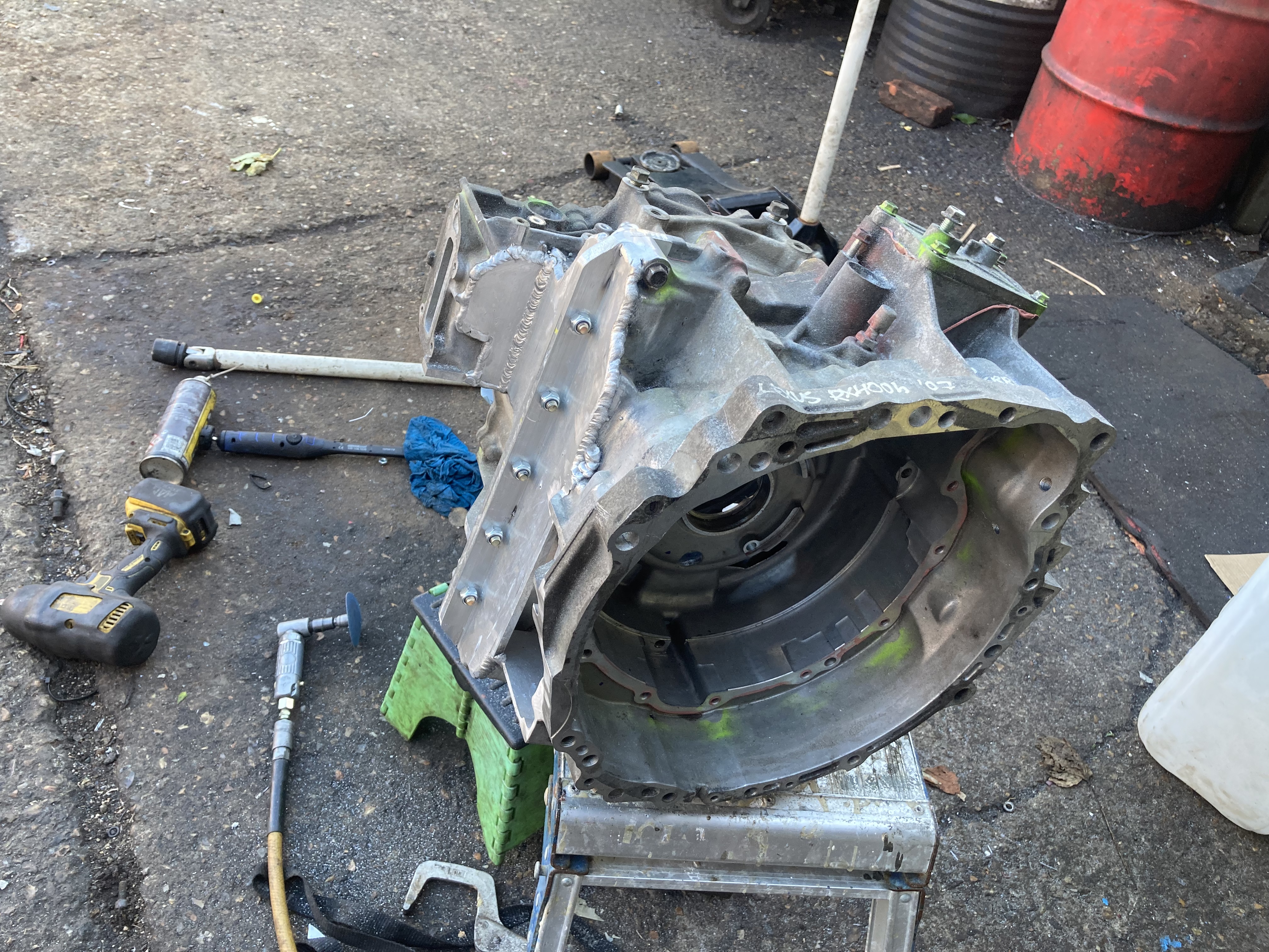 So project build a motor from a Lexus transaxle because it was basically free has begun in some kind of fashion this week, lots of cutting and swearing at my ugly ass ally mig welds later and we have a case minus differential,