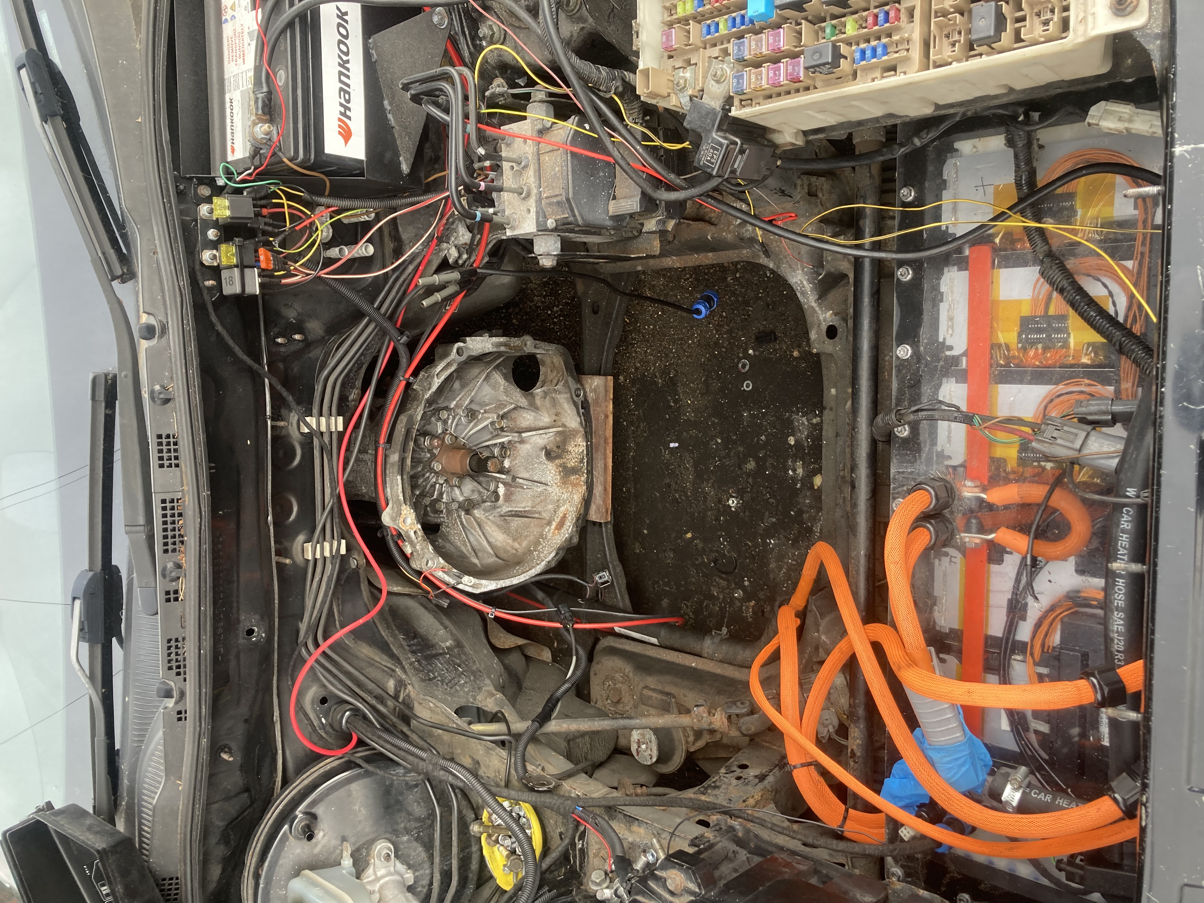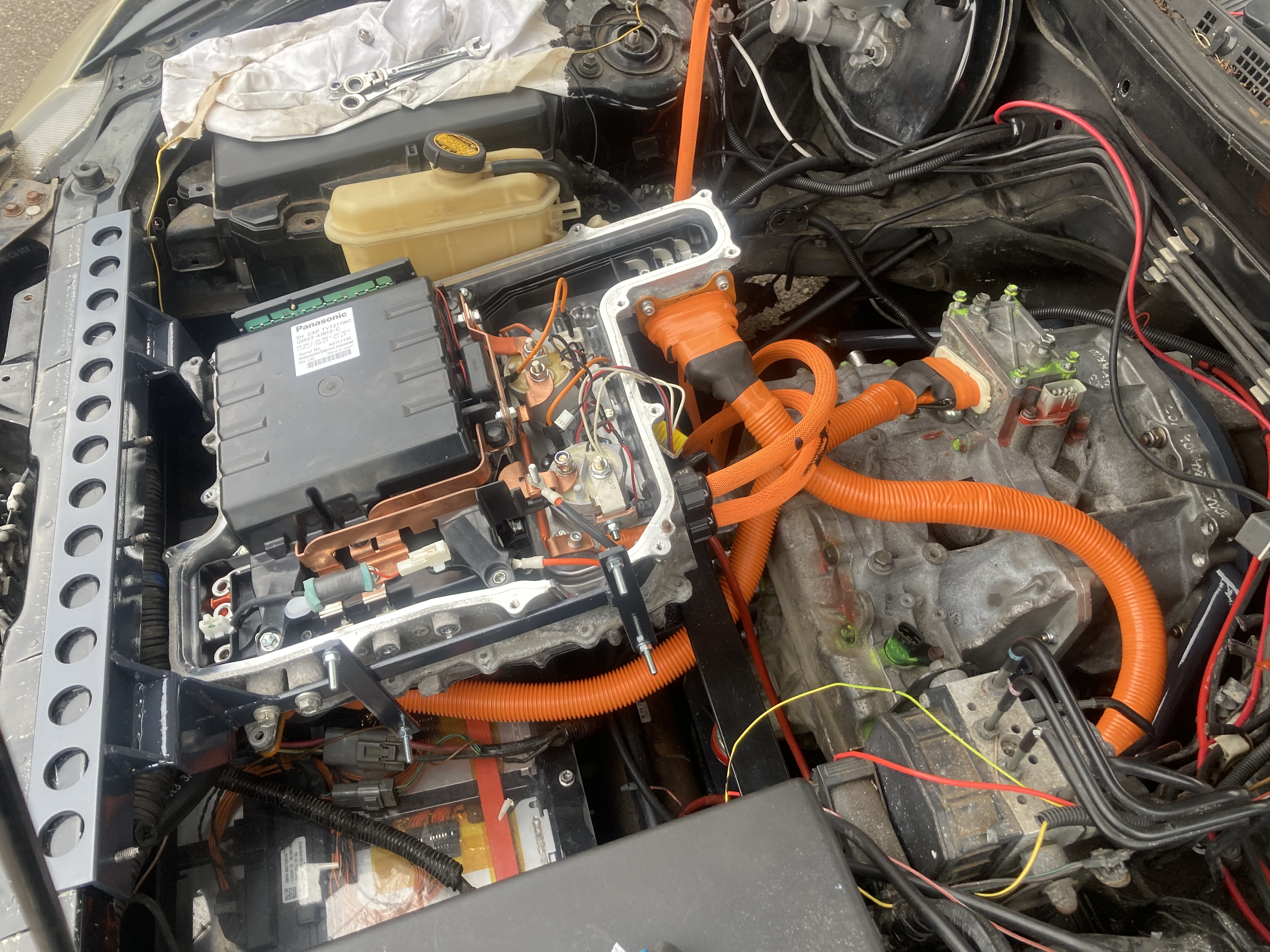 So inverter is back in, HV wiring mostly done, as I’ve ditched the boost inverter I’ve used the space inside the inverter to house the maintenance contactors and precharge,