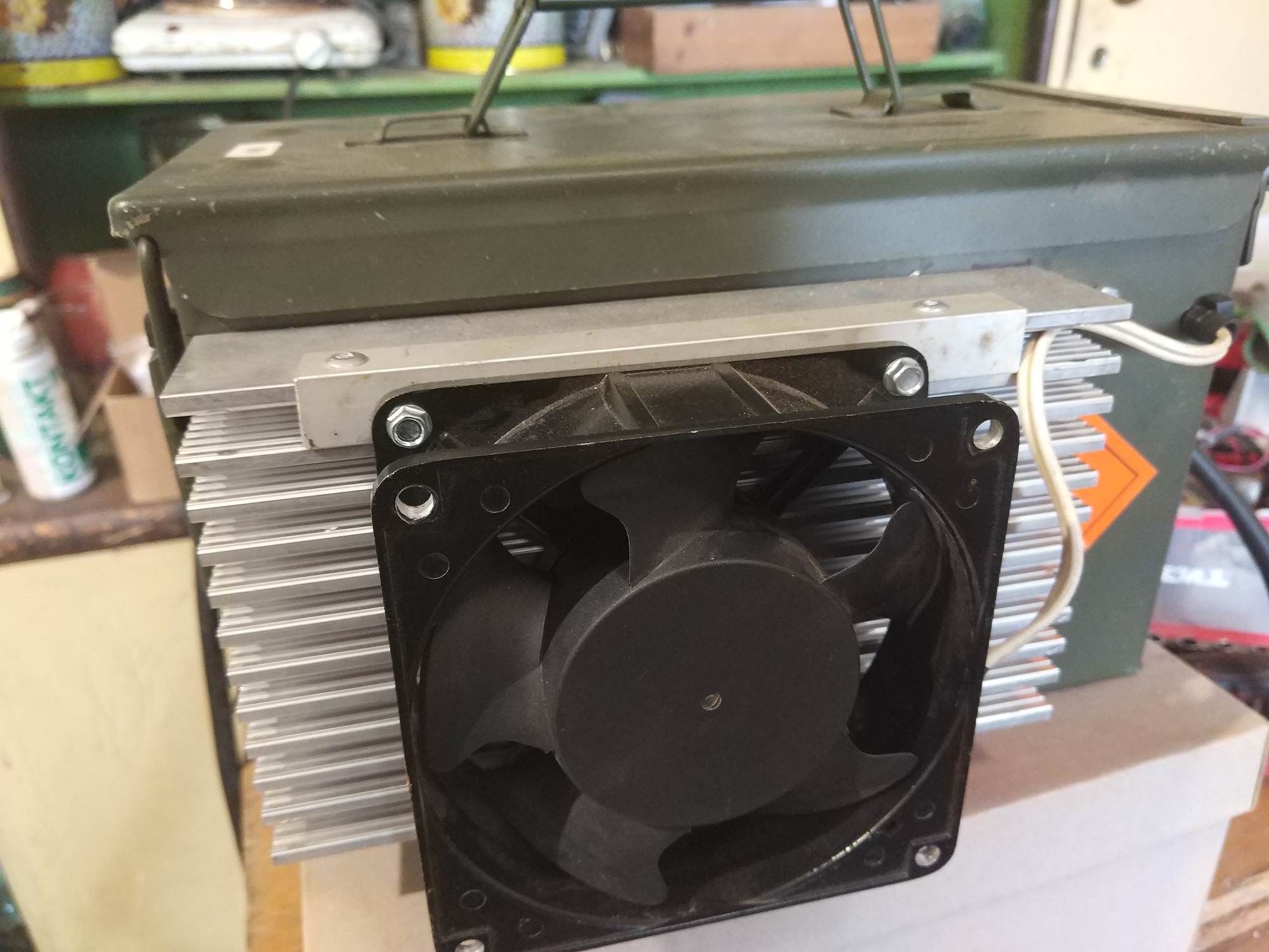 Once i connected it and tested everything it became clear alu fins will heat up. So i got one 230Vac cooling fan over the fins.
