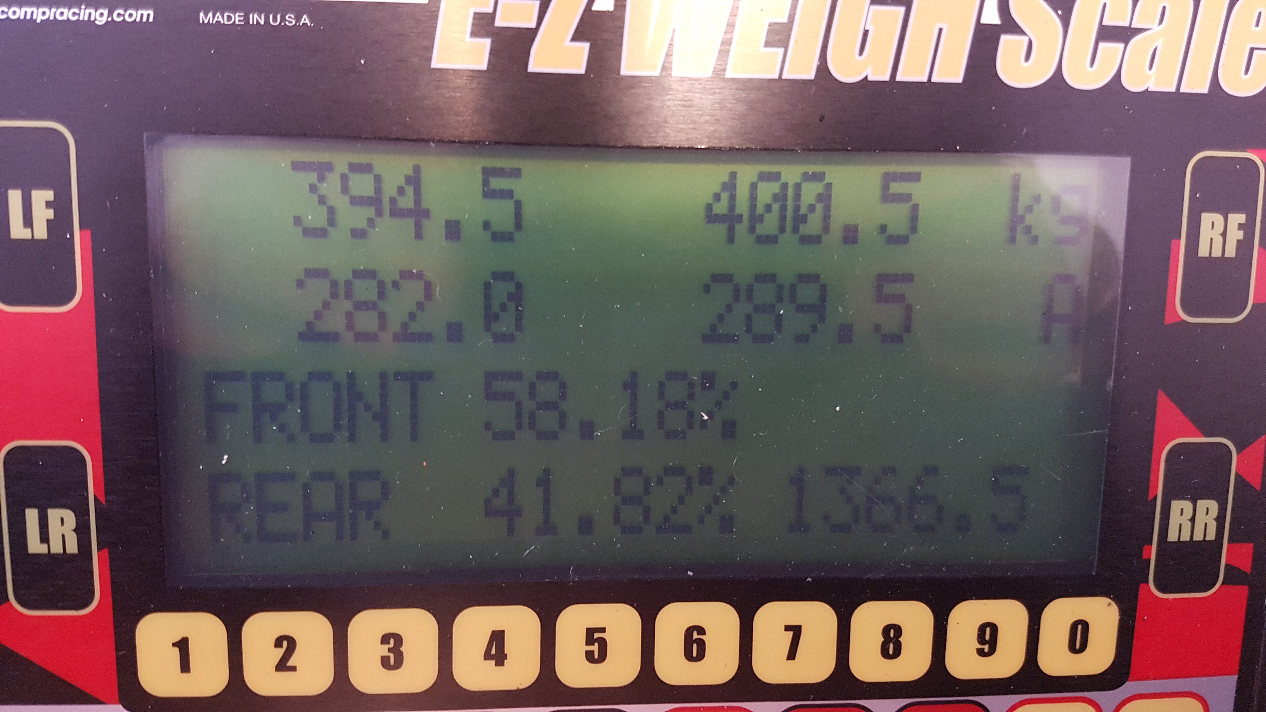 . Not bad considering. 58/42 weight distribution and corner weights are within 5kg of each other. A little nose heavy but good for a FWD car I guess correct me if I am wrong. Overall weight is down about 20kg, that includes 10kg dummy ballast in the boot for charger and other bits.