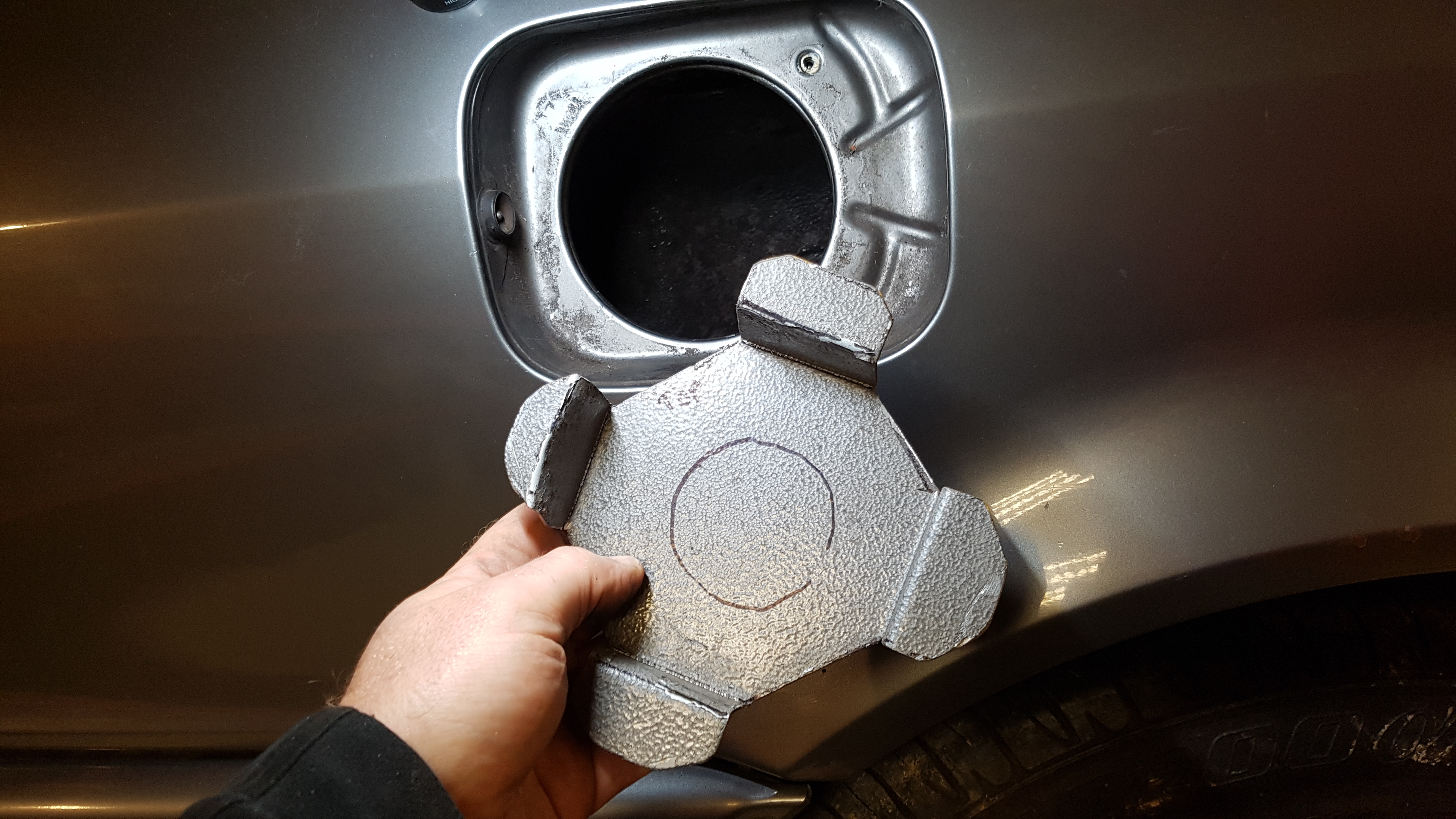 Next up make a decent job of the charge port. I found the original weather seal from the old tank filler which had the same diameter as the rubber neck on the charge port. Perfect