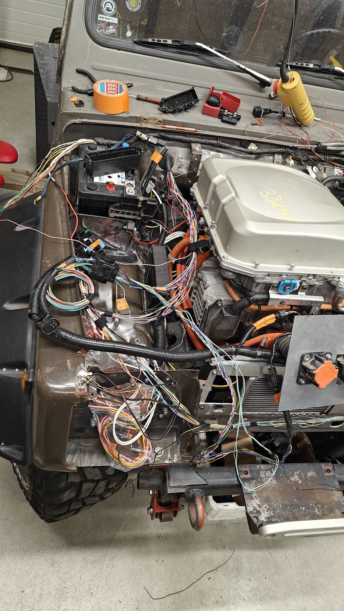 Taming the spaghetti has proceeded as expected and there are very few on the "get back to this later" -list Zombieverter will find its new home under the glovebox, similarly to the ICE ECU I had mounted there. That way I don't have to "recalibrate" my max water level