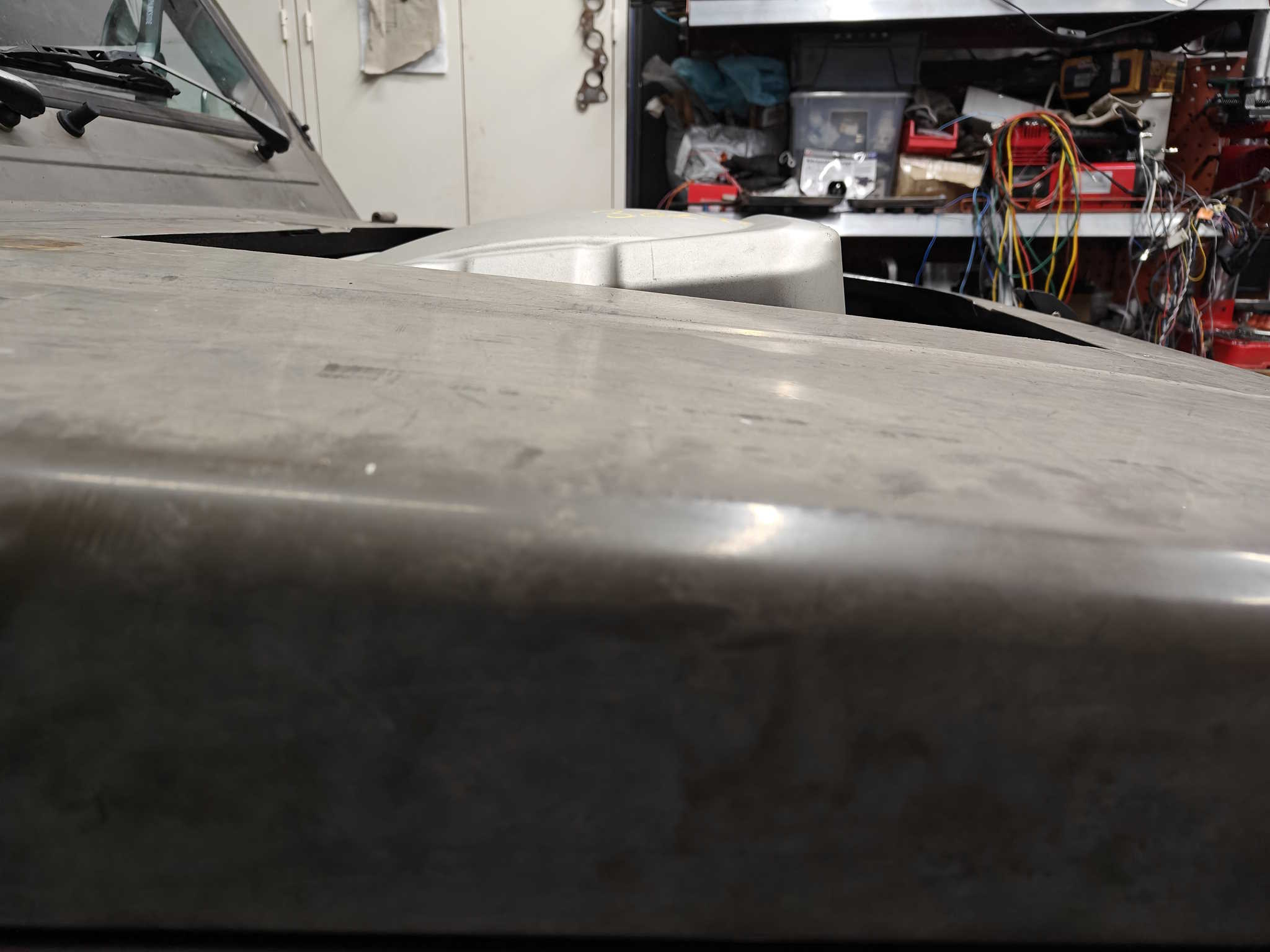 The hood scoop is now really made from a snow scoop I picked up from for free. It was probably run over with a car or something and didn't work for snow scooping. For hood scooping there was enough material to work with