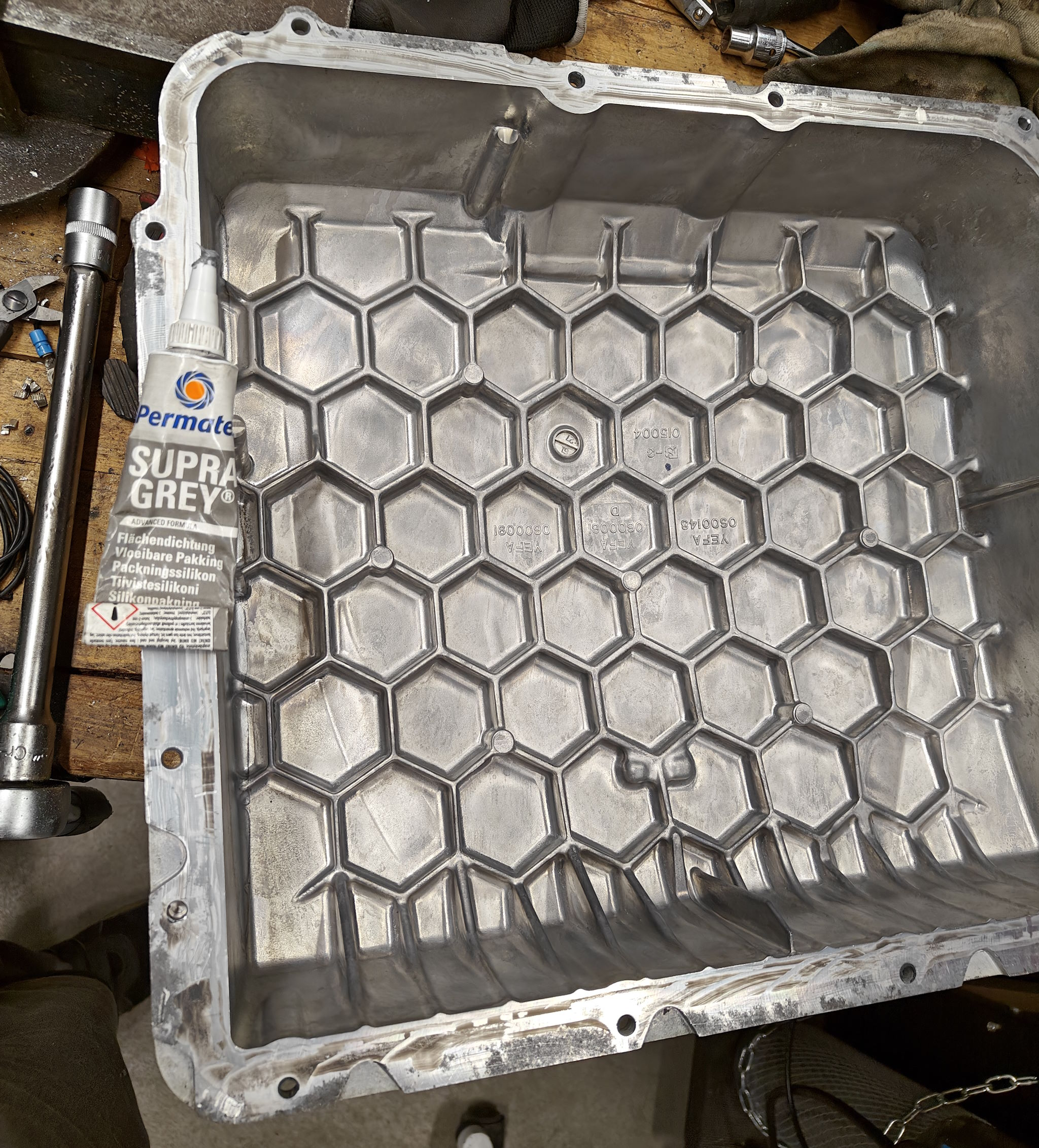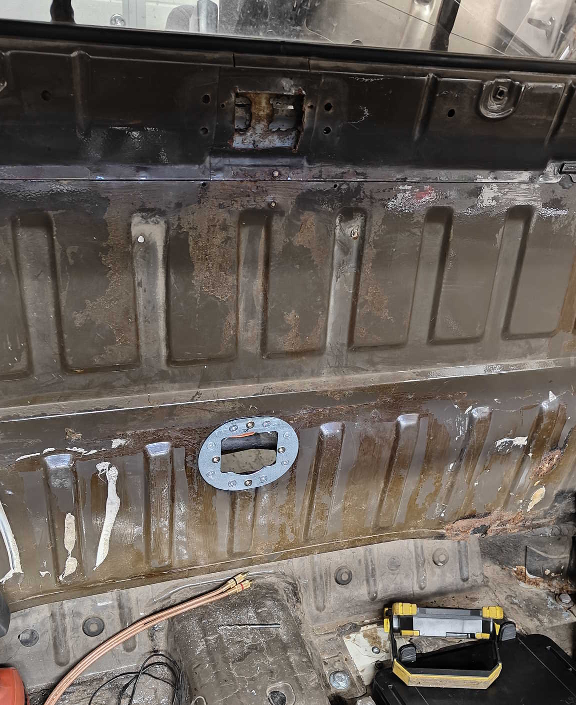 Cleaned up the cover and battery box body. Prepped with rust primer and cleaned the glue residue Didn't have the dam rubber or similar at hand, so opening will be paiful also next time...