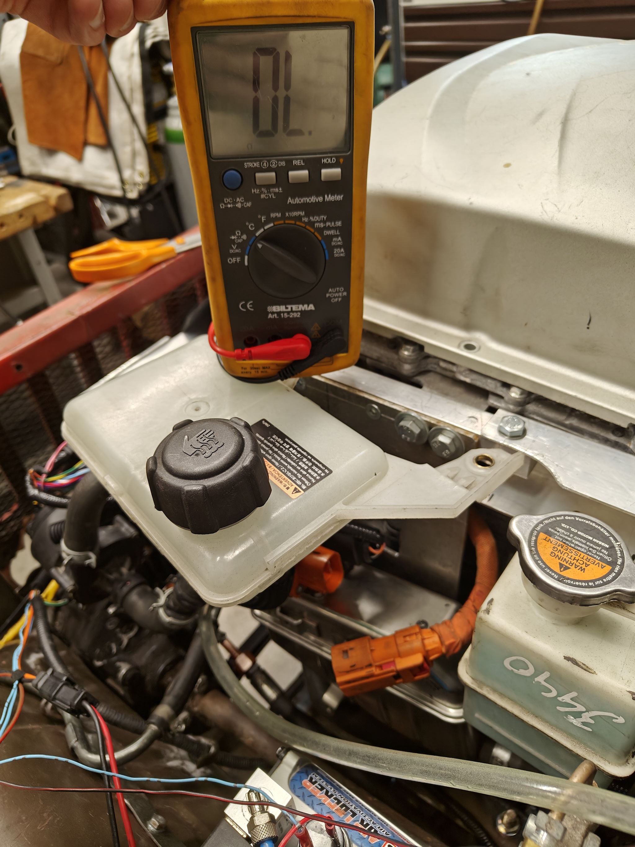 Prodded the HV connectors on main harness and VW heater as well as the charge ports. The analog gauge is not the most precise, but got tha ball park numbers that I could use for the report for initial inspection I'm writing for MOT.
