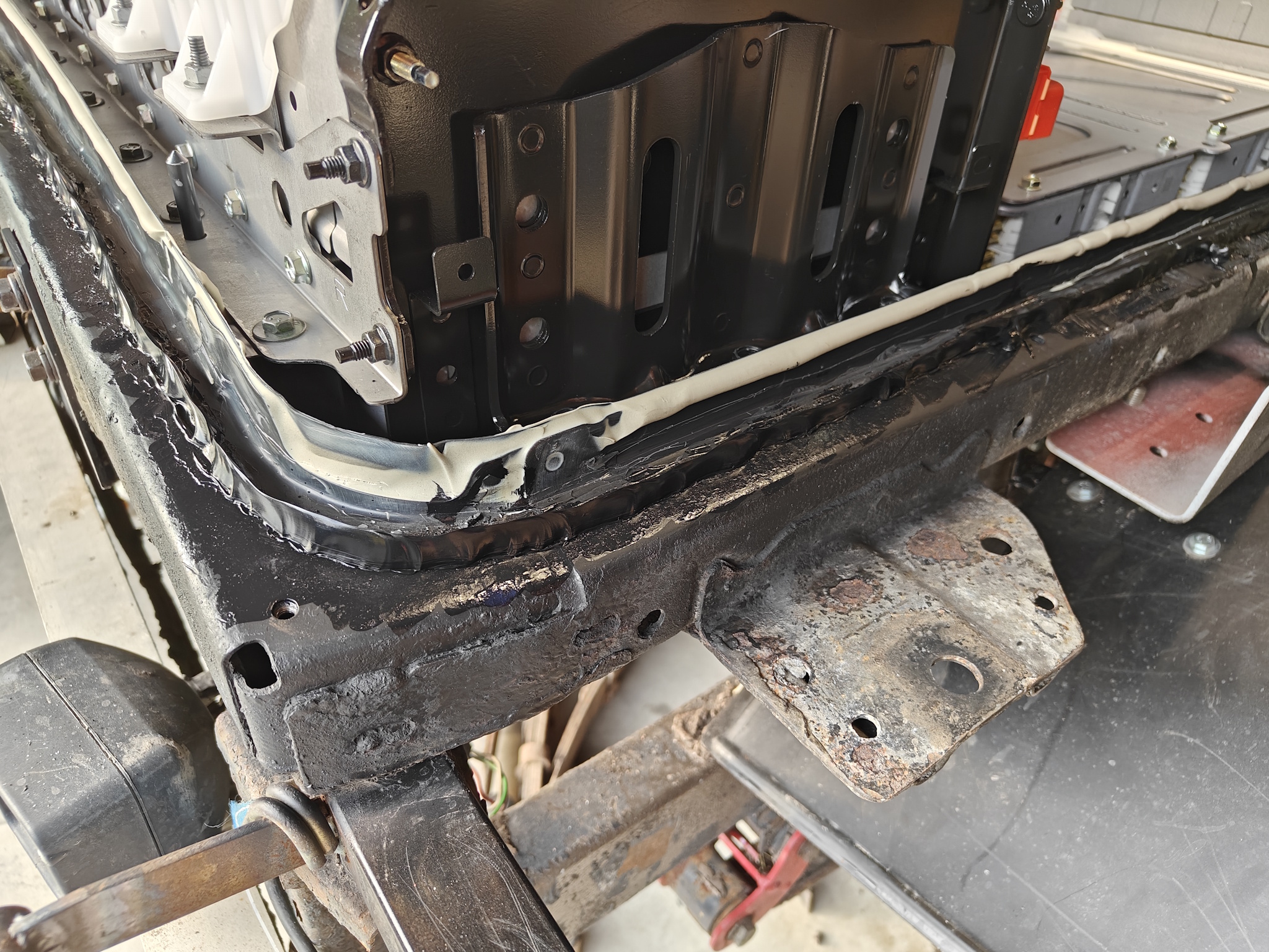 Nissan has specified Dow Chem urethane based glue for the battery box, well didn't have that but the Sika windshield glue kit has all the needed chems and there is also enough to glue the battery box lid