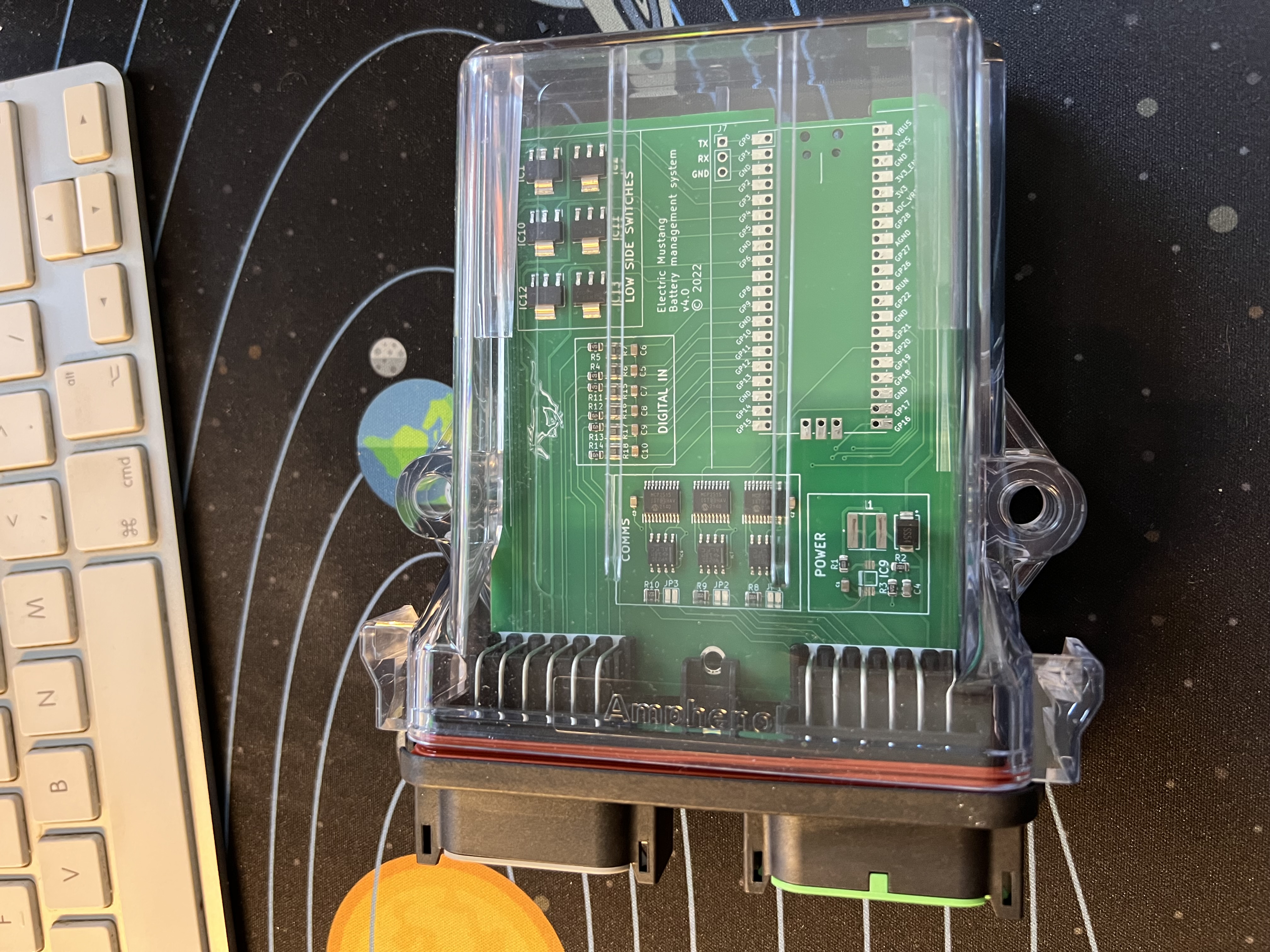 The latest (and hopefully final) version of the hardware is v4. I saw someone in another project using a very cool transparent case and I decided I had to have one too.