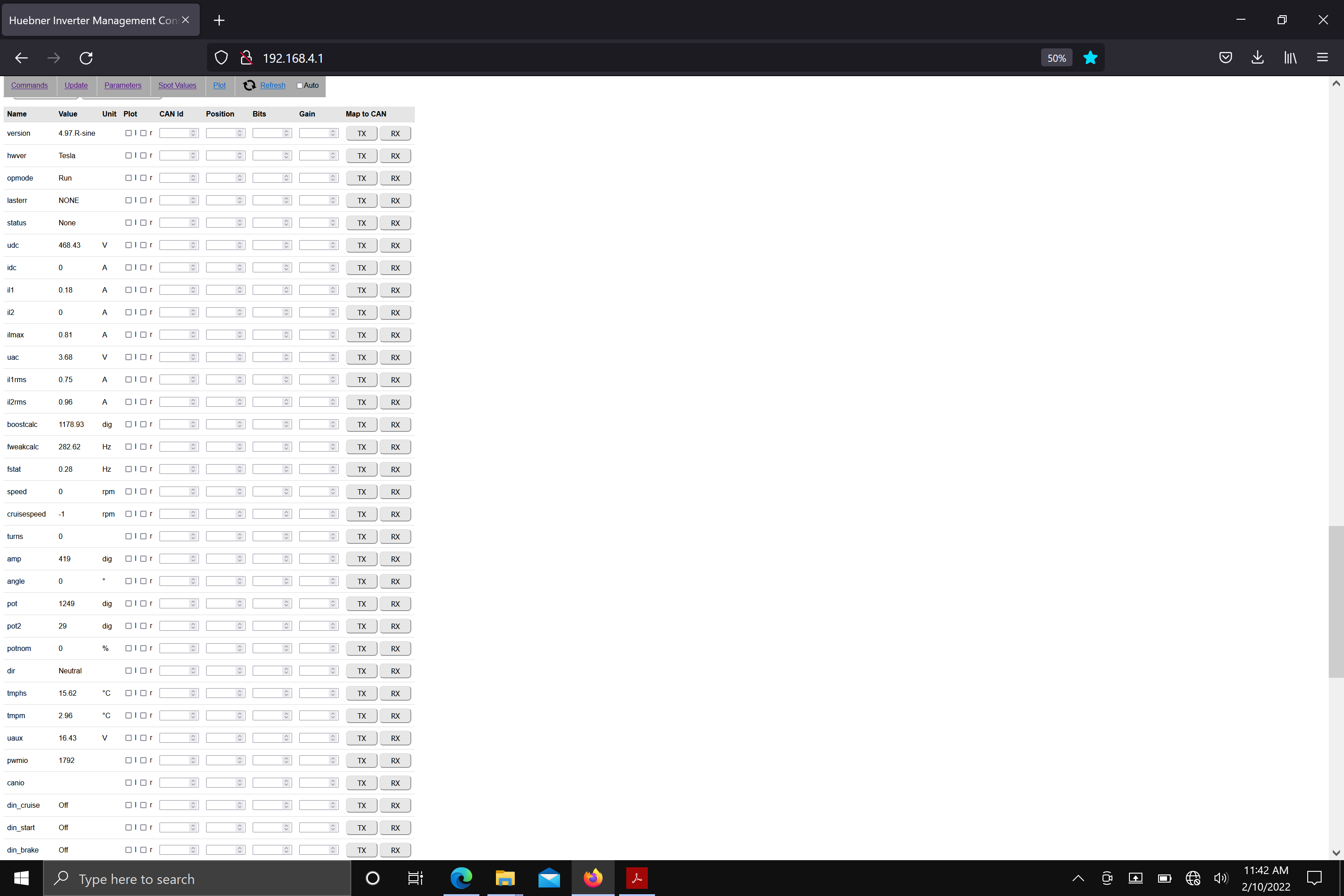 The drive unit will turn with an ocurlim of -300, so it’s good to adjust that down for testing purposes before hitting the accelerator too hard at full voltage.