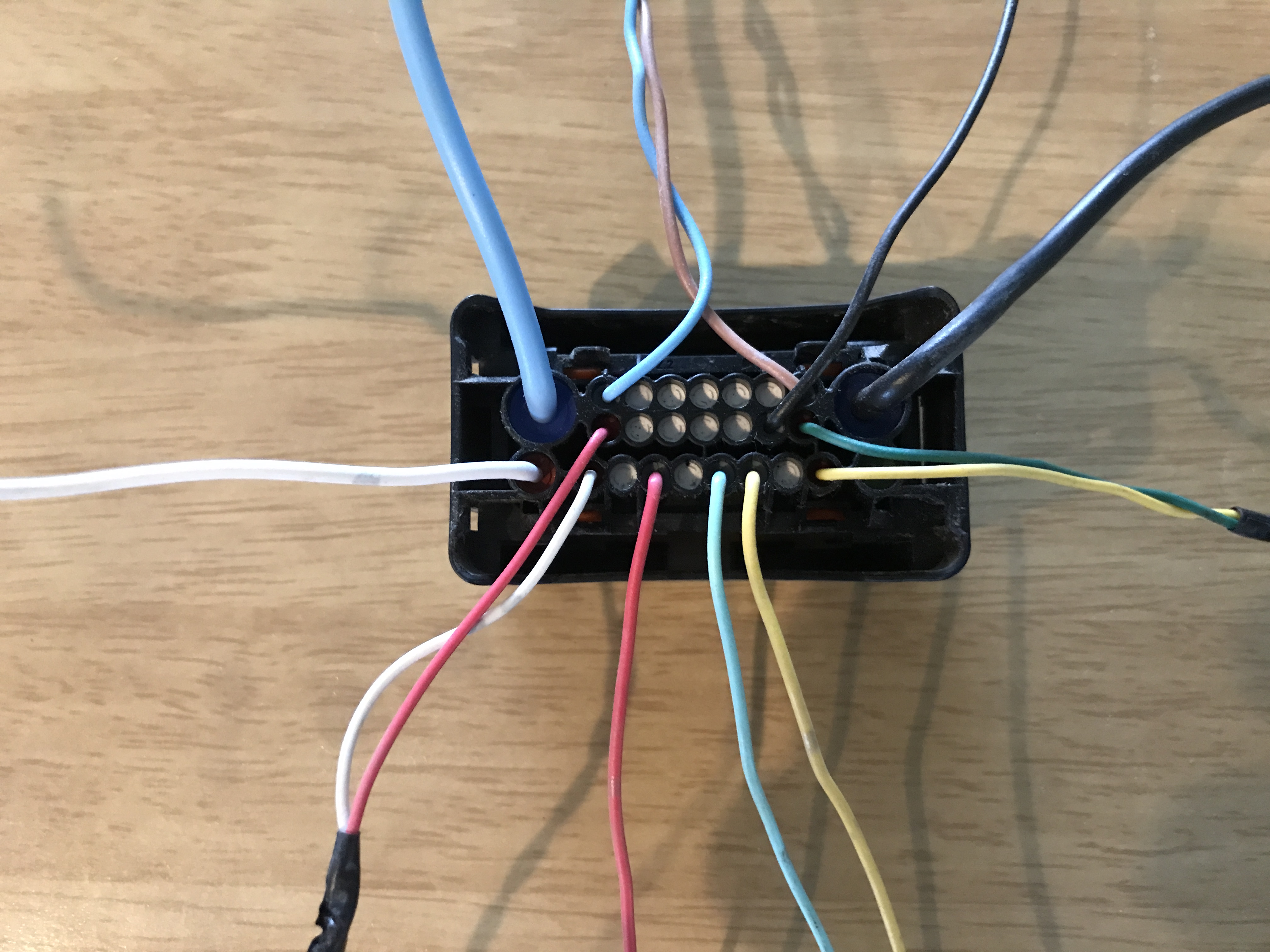 however BOSCH goes out of their way to make a connector so encapsulated that no one can tell which wire goes to where, so The Greg (and don't ask me how I did it) had to liberate the cover off of it to take a peek looksie inside