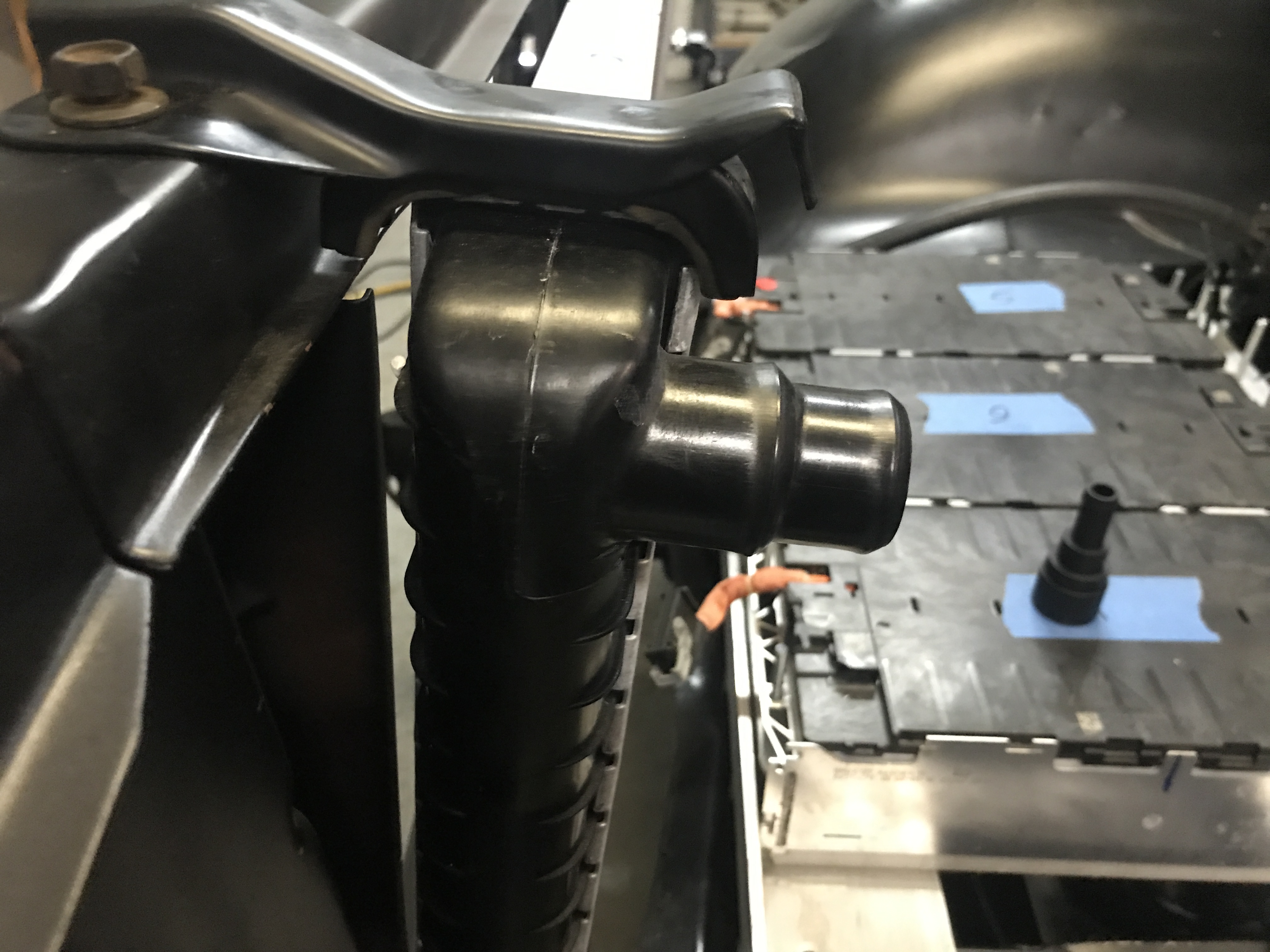 second, the new rad takes care of the bottom outlet interference problem as it has a much shorter snout as well as not as big inlets and outlets as the old rad did