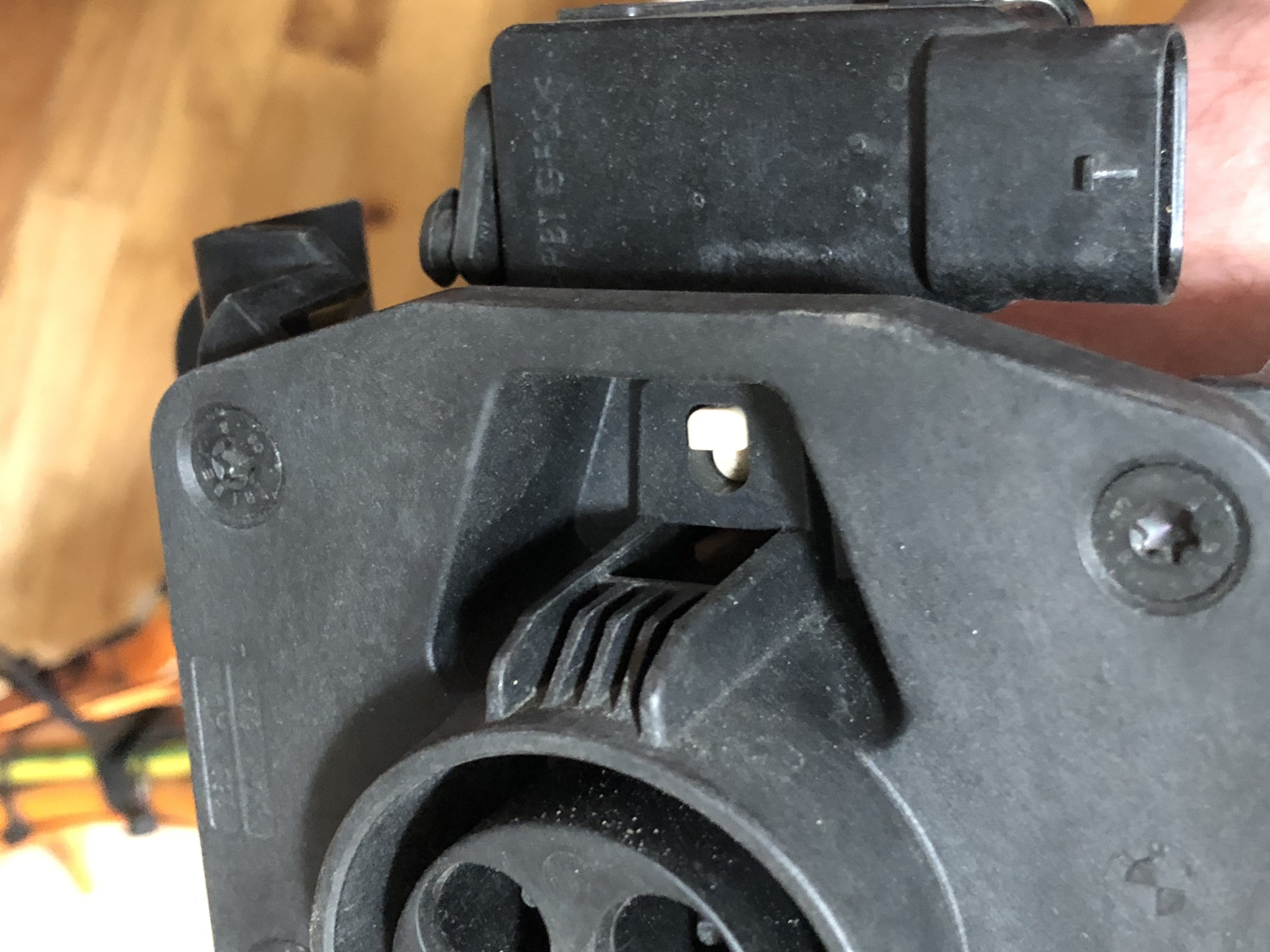Apparently, sometime in late 2015 BMW redesigned the inlet to make it more difficult to just insert a tool to press back the actuator, but the actuator itself remains.