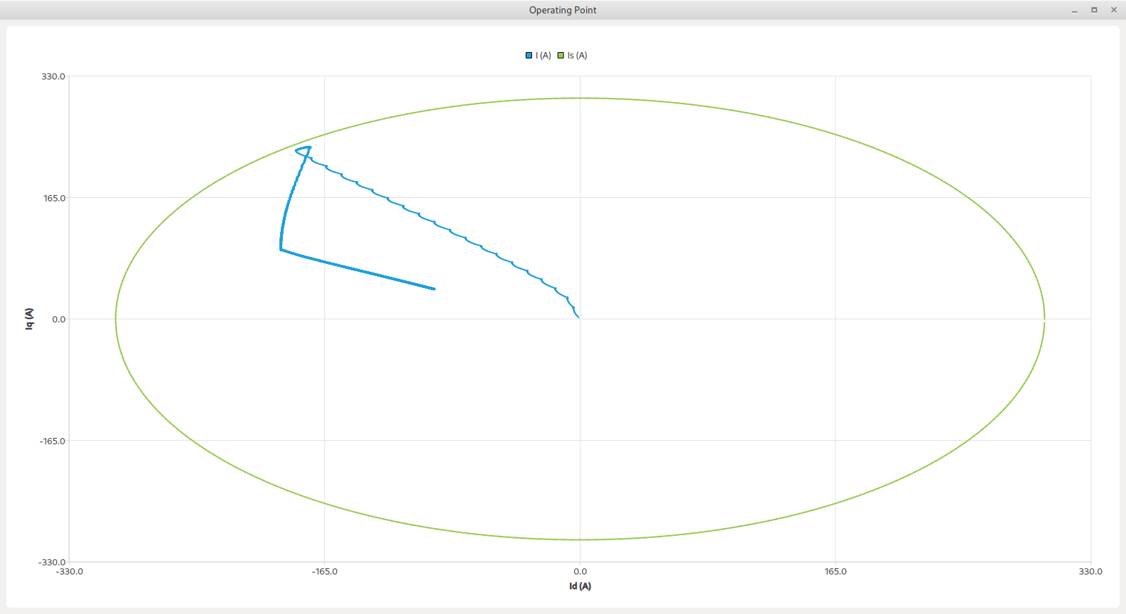 The initial near vertical bit is actually increasing -Id slightly which is going in the wrong direction. The ideal would be to pull some -Id out to move closer to icrit while also allowing Iq to remain higher (this does depend on what ud is doing though) which should help keep torque up.