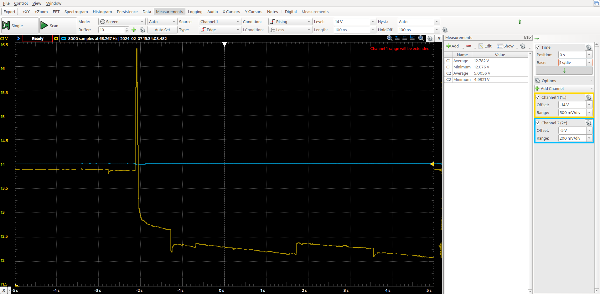 4. The 12V, just to get the info whether the reset is before, during or after the spike on the 12V.