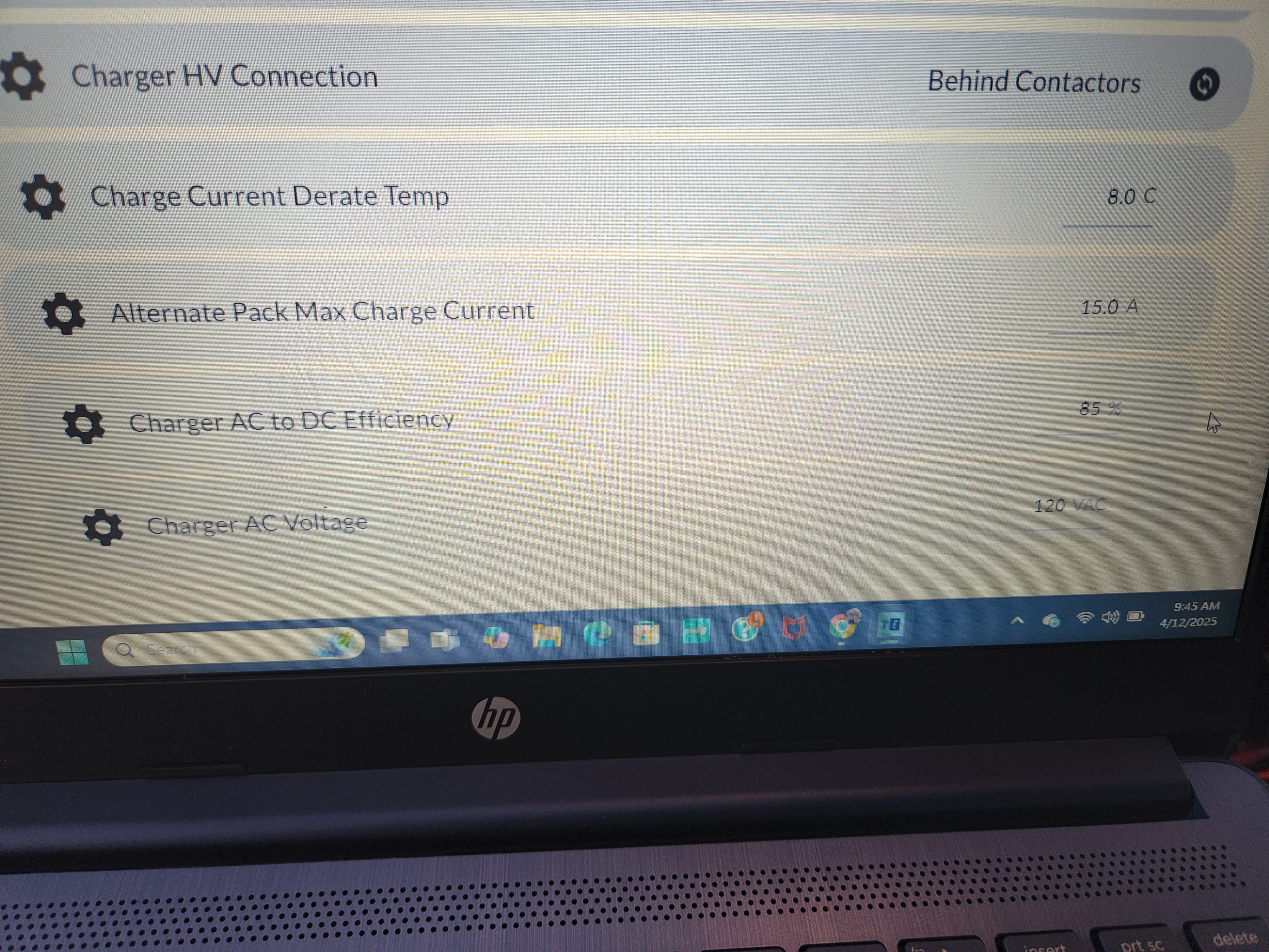 When I plug In the EVSE it indicates ready on the EVSE. Nothing happens, no fan, no charge. I have 12volts at the simp charge, good ground. All connections are secure. I have the proper resister in place as well. I was wondering if any of my parameters need to be adjusted in the photos above