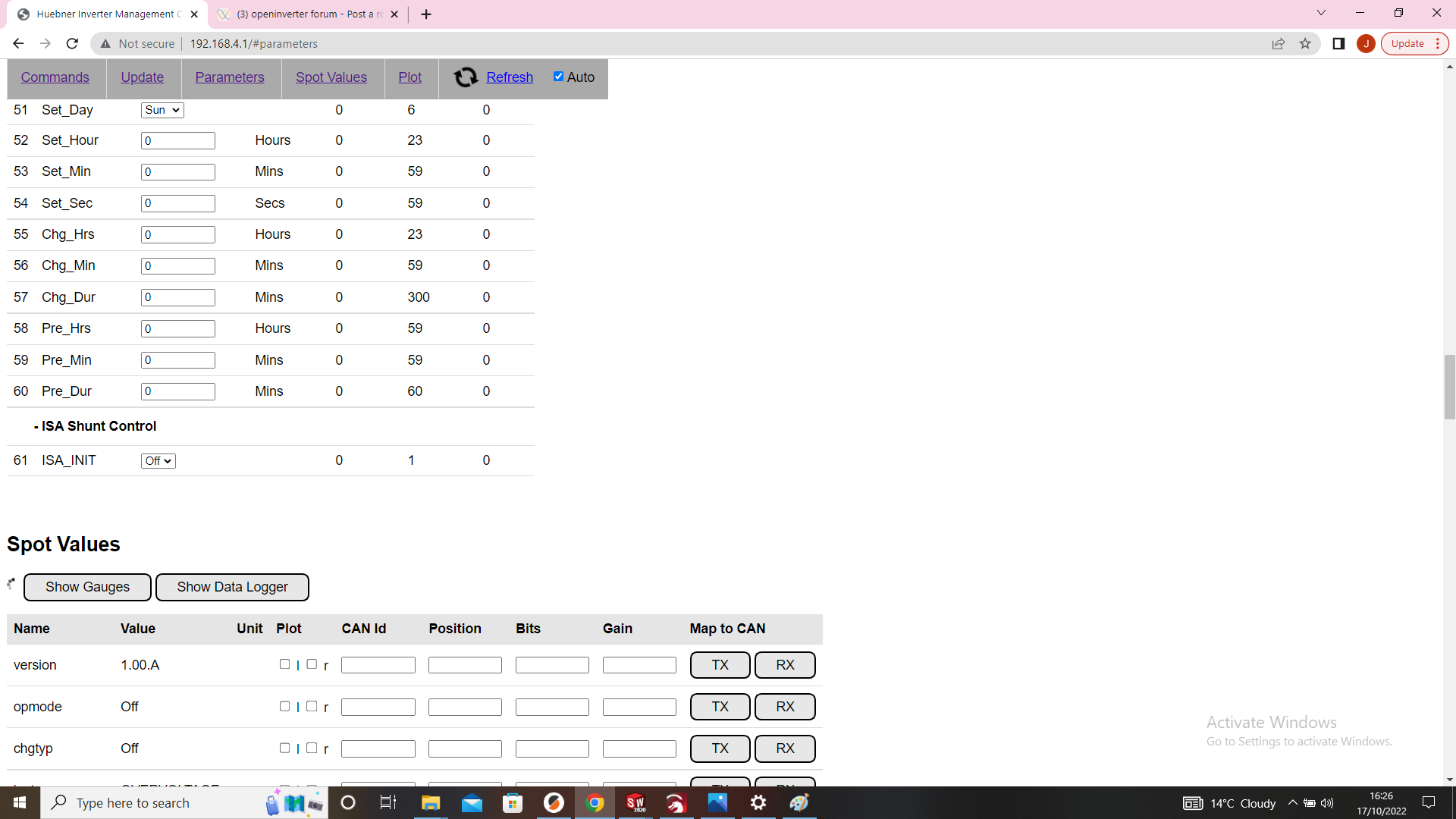 Have checked over the videos, decided to reflash the VCU with another version,Jack Bauer wrote: ↑Wed Oct 19, 2022 2:37 pm SOC is for informational purposes only. Please see the video links in the wiki page. Are you running the latest release firmware?