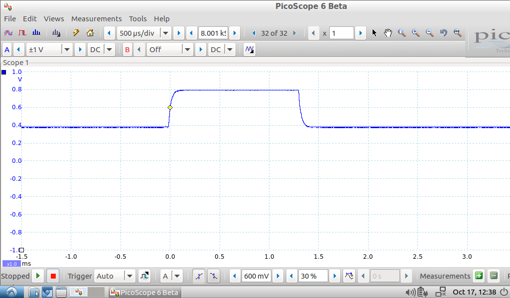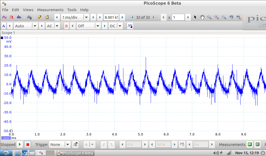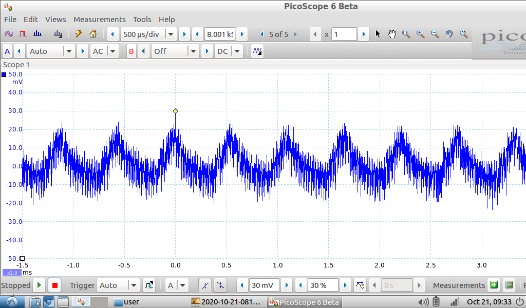 The LED runs at 100ms. This signal I found runs at 102ms and is out of sync with the LED.