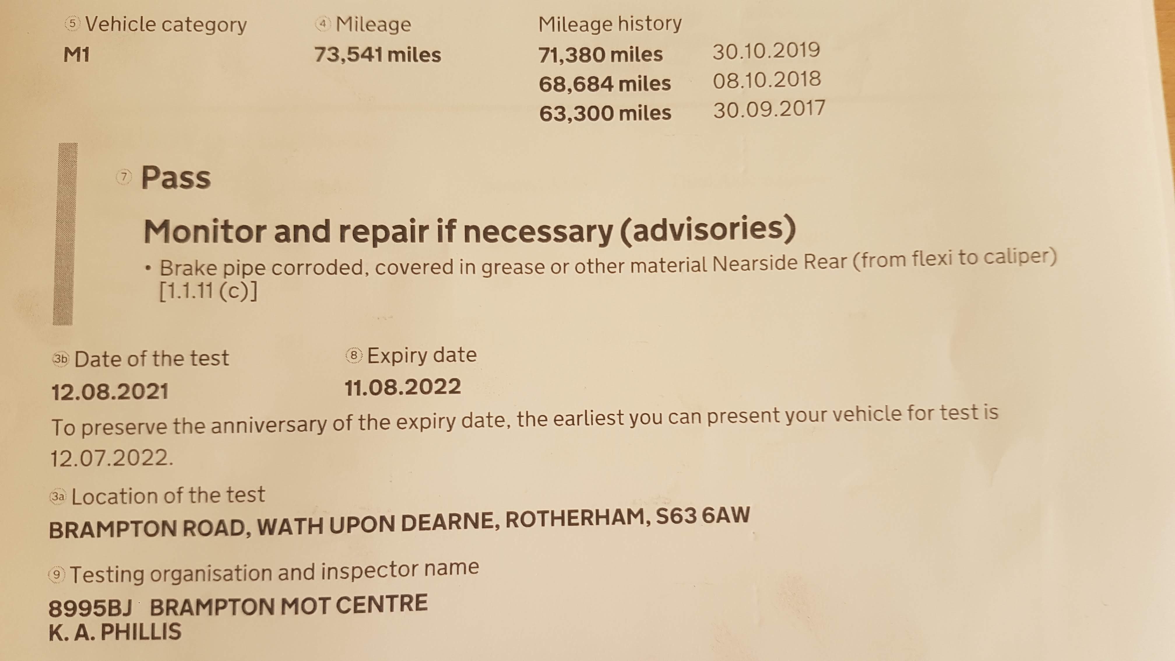 Did you need to pass an inspection or was the MOT enough?