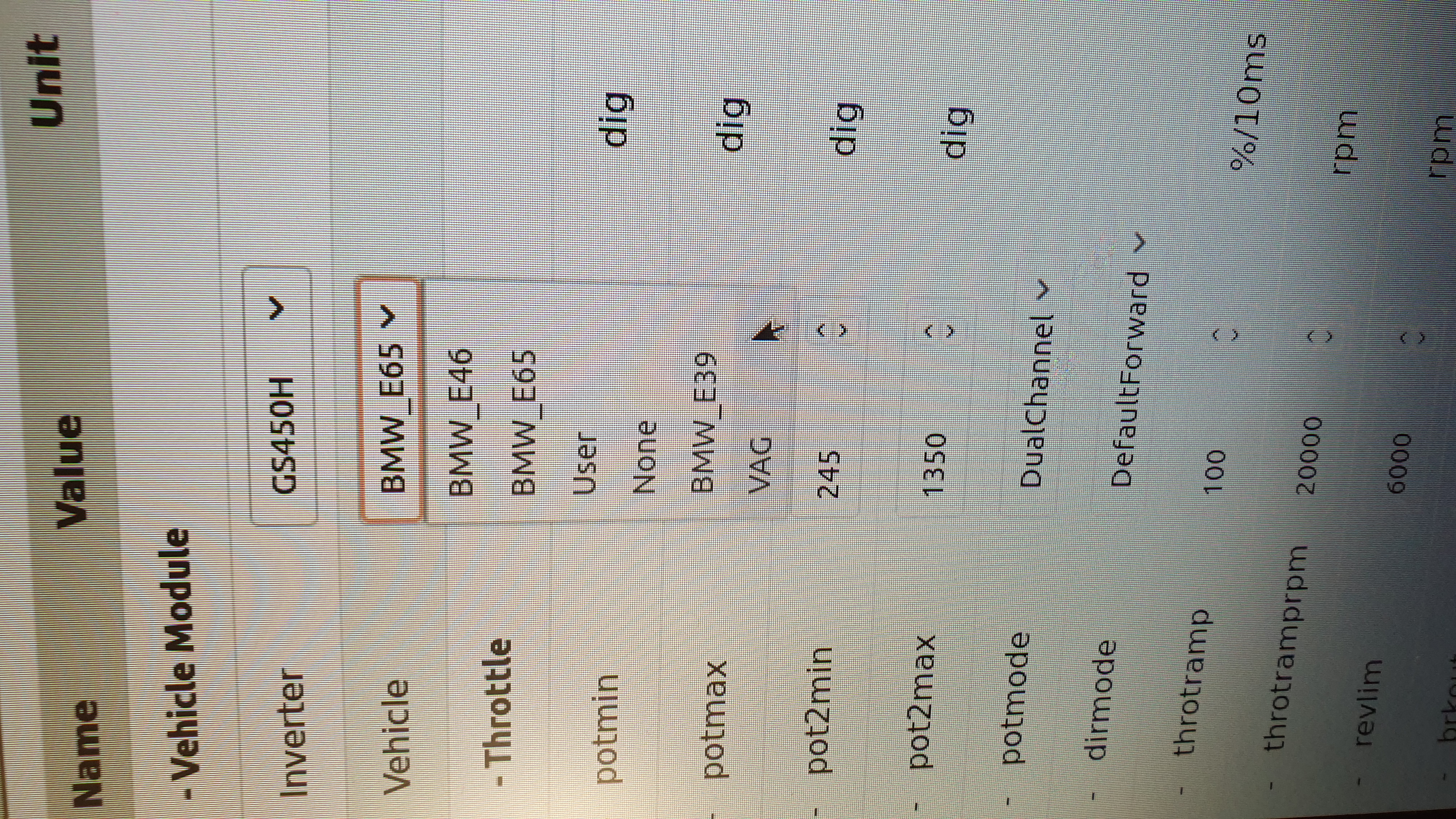 I've calibrated my BMW pedal, but i'm not seeing the "potnom" parameter move, even when i give it a direction input. So i need to look at that, I think i haven't given the ECU the "start" input.