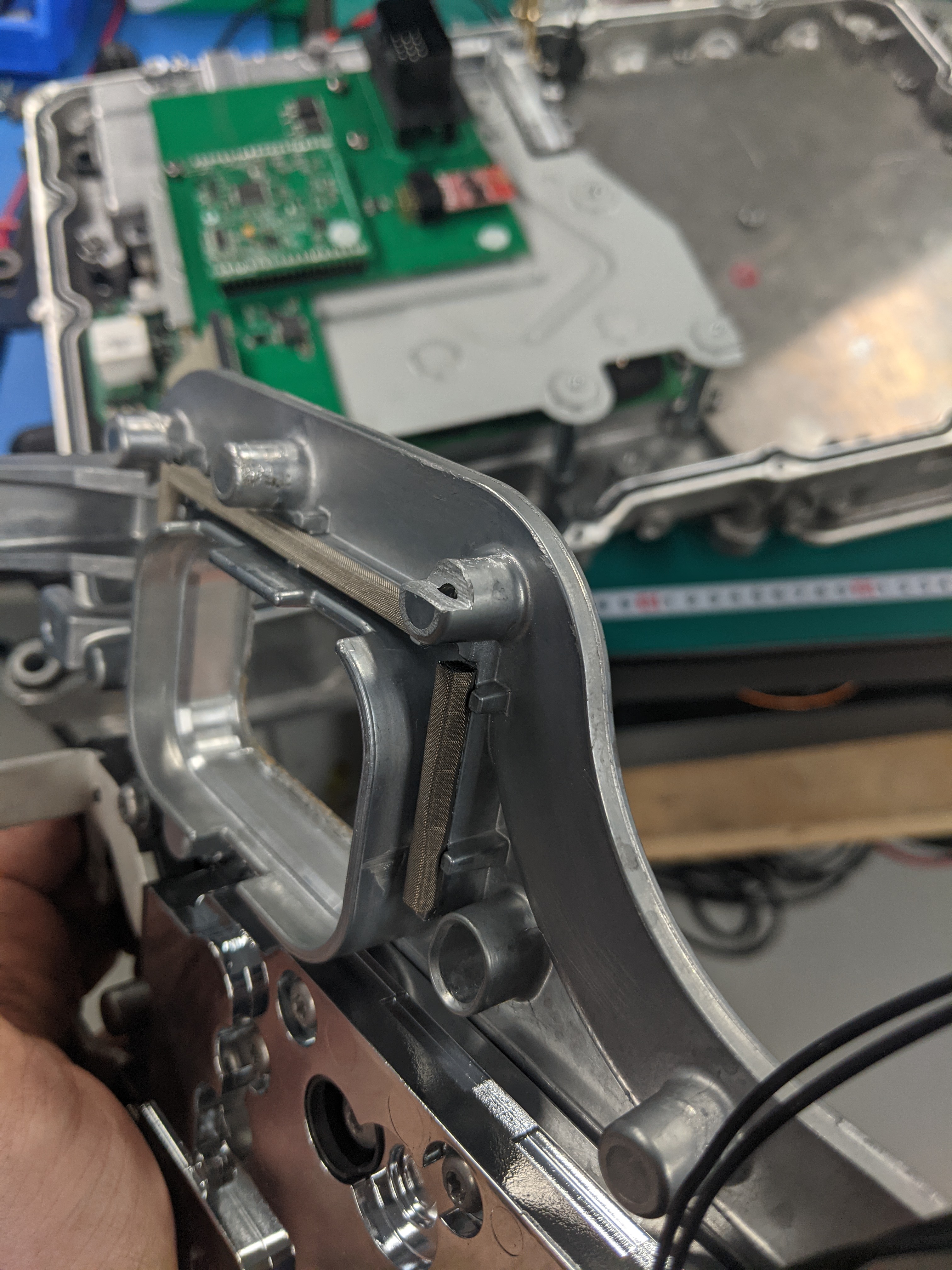 3. Lastly, I've made some waterjet cut blanking plates to close off cooling for the charger and DCDC inside the housing. This is just to remove them whilst they aren't doing anything useful and remove some weight from the assembly. Unfortunately it's not straightforward to do this, as some posts have to be machined down for these flat plates to fit, and this exposes one of the threads from the liquid side. I've hydraulically sealed this one, so it shouldn't be a problem (fingers crossed). If people want DXF files for these I can definitely send some links. They are definitely