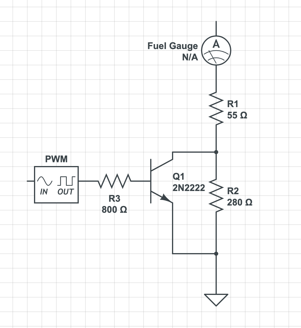 I'm trying to control my fuel gauge but it's not stable. I'm currently just using an UNO to generate a PWM signal, but will be moving over to the STM32 that's already in the car once I've got it sorted.