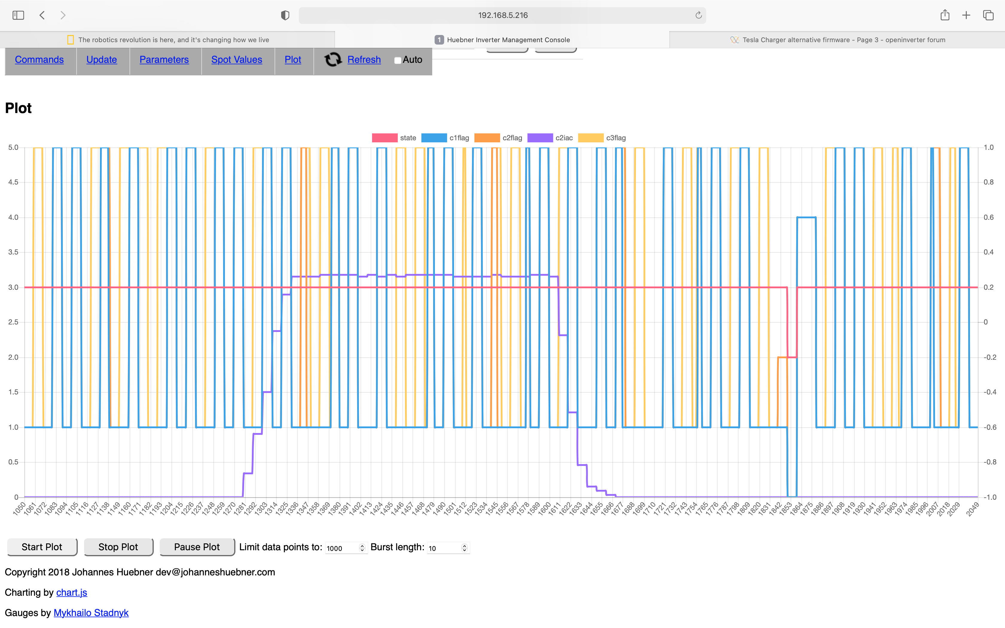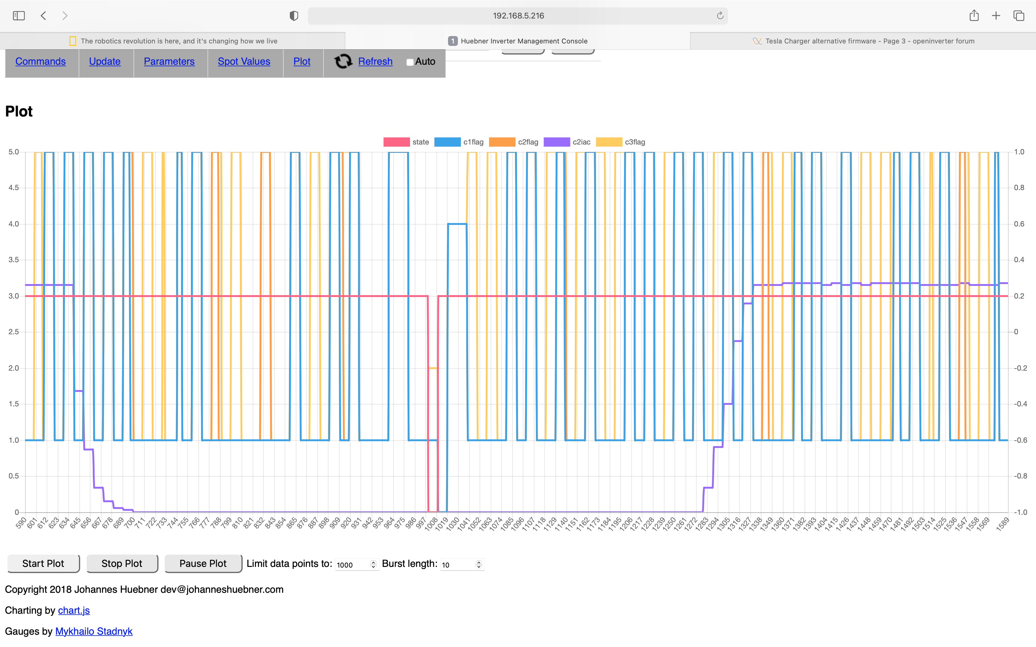 I hope Bryson gets the plot running so we can hunt the glitch down. I'm suspecting one of the chargers raises an error flag. Anyone know the conditions that raise the error bit?