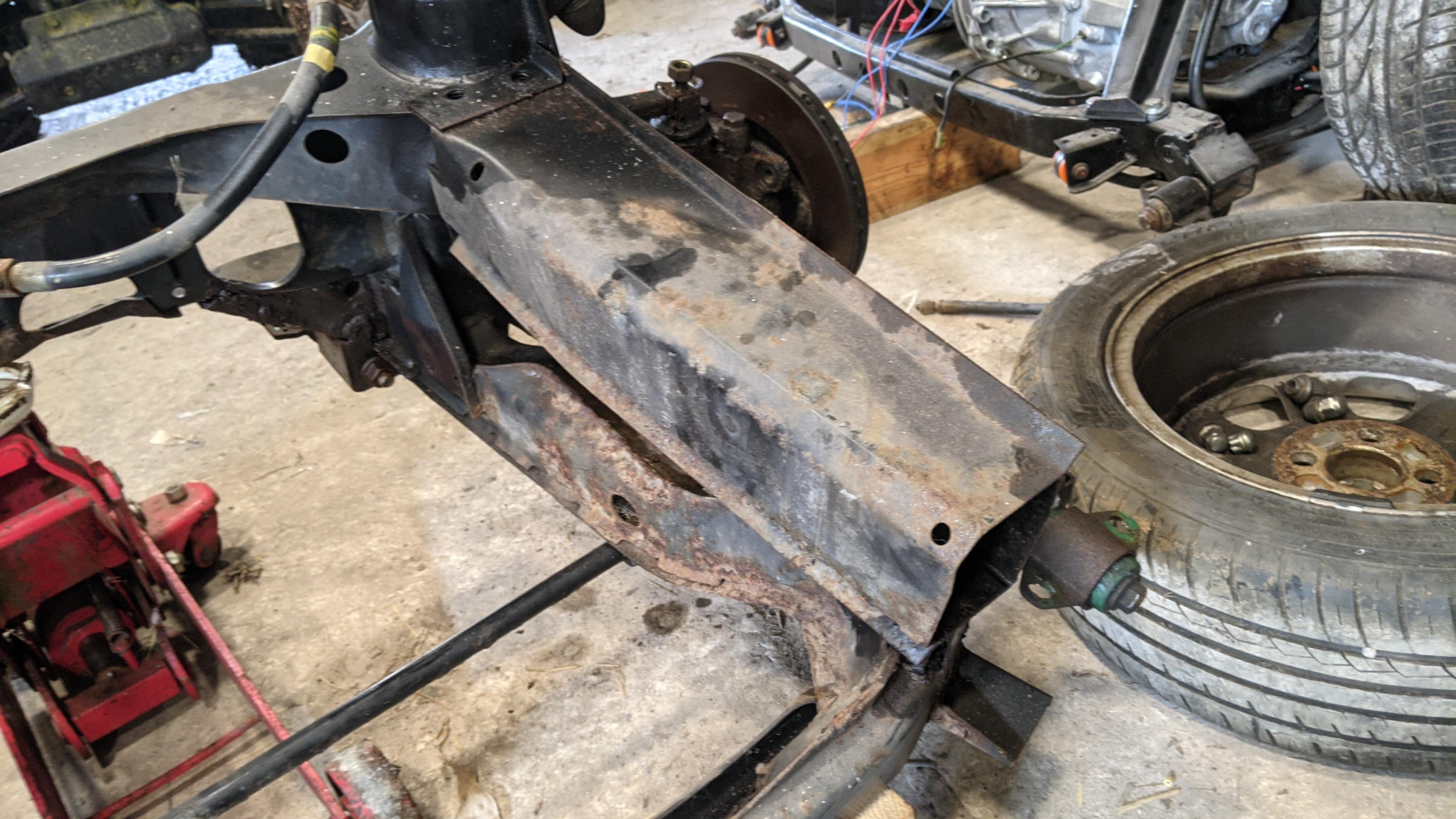 The rest of the subframe seems pretty good. There are some pretty light weight sections of box steel along the sides where the engine mounts would have gone in a Metro I would assume.
