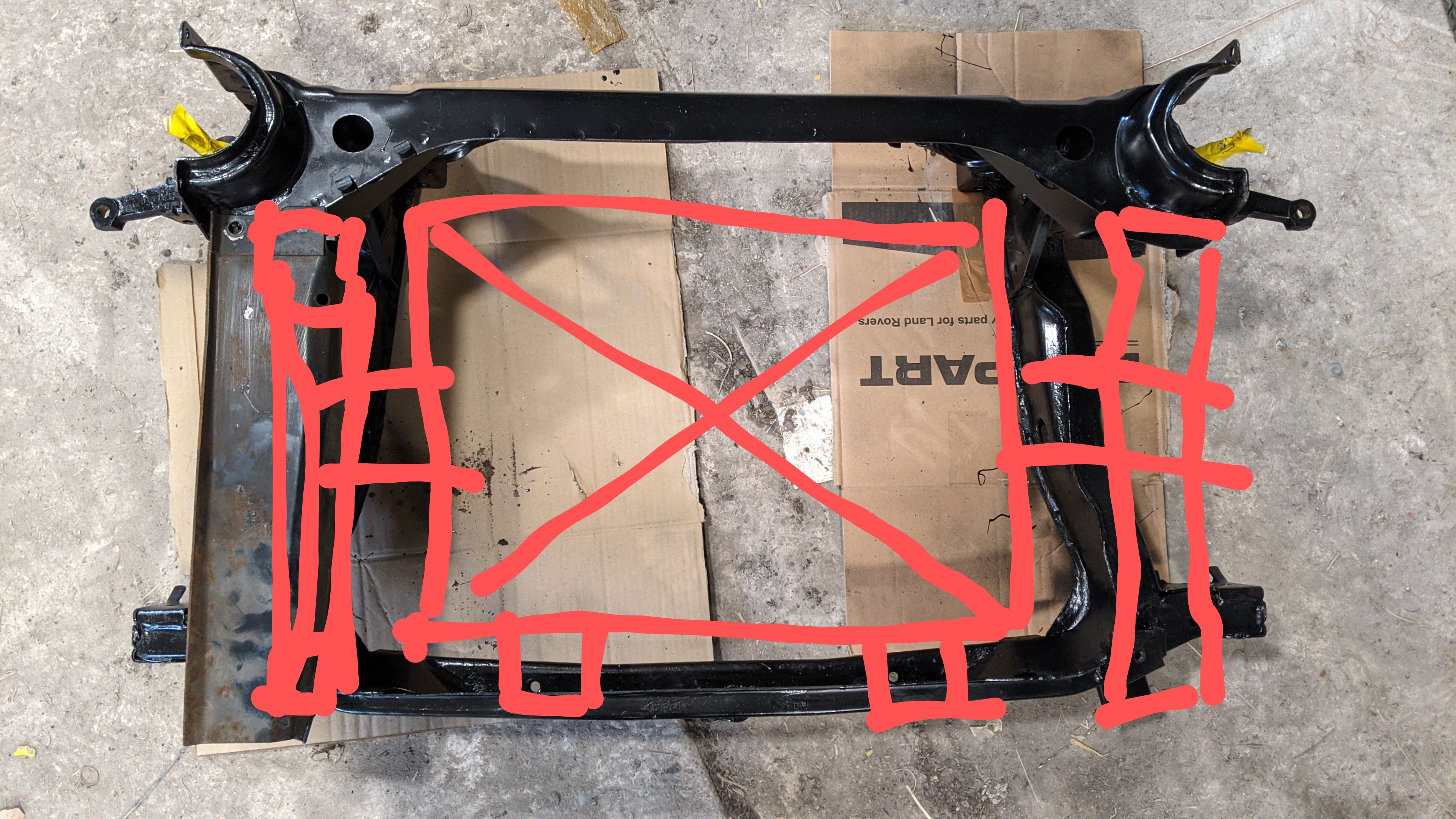 Stripped and cleaned the front subframe and given it all a nice bit of paint. Now on to the tricky part of battery boxes and how to attach.