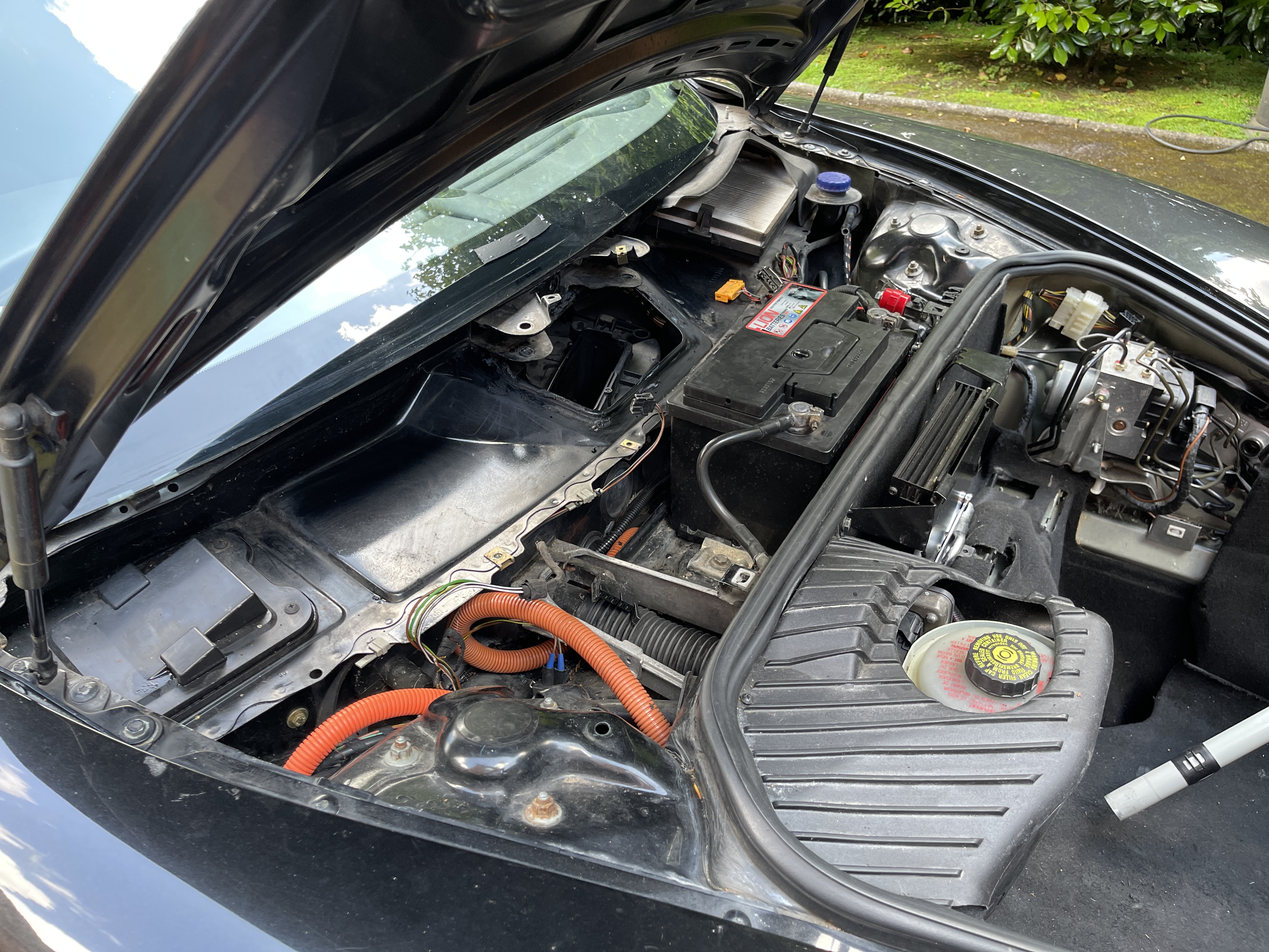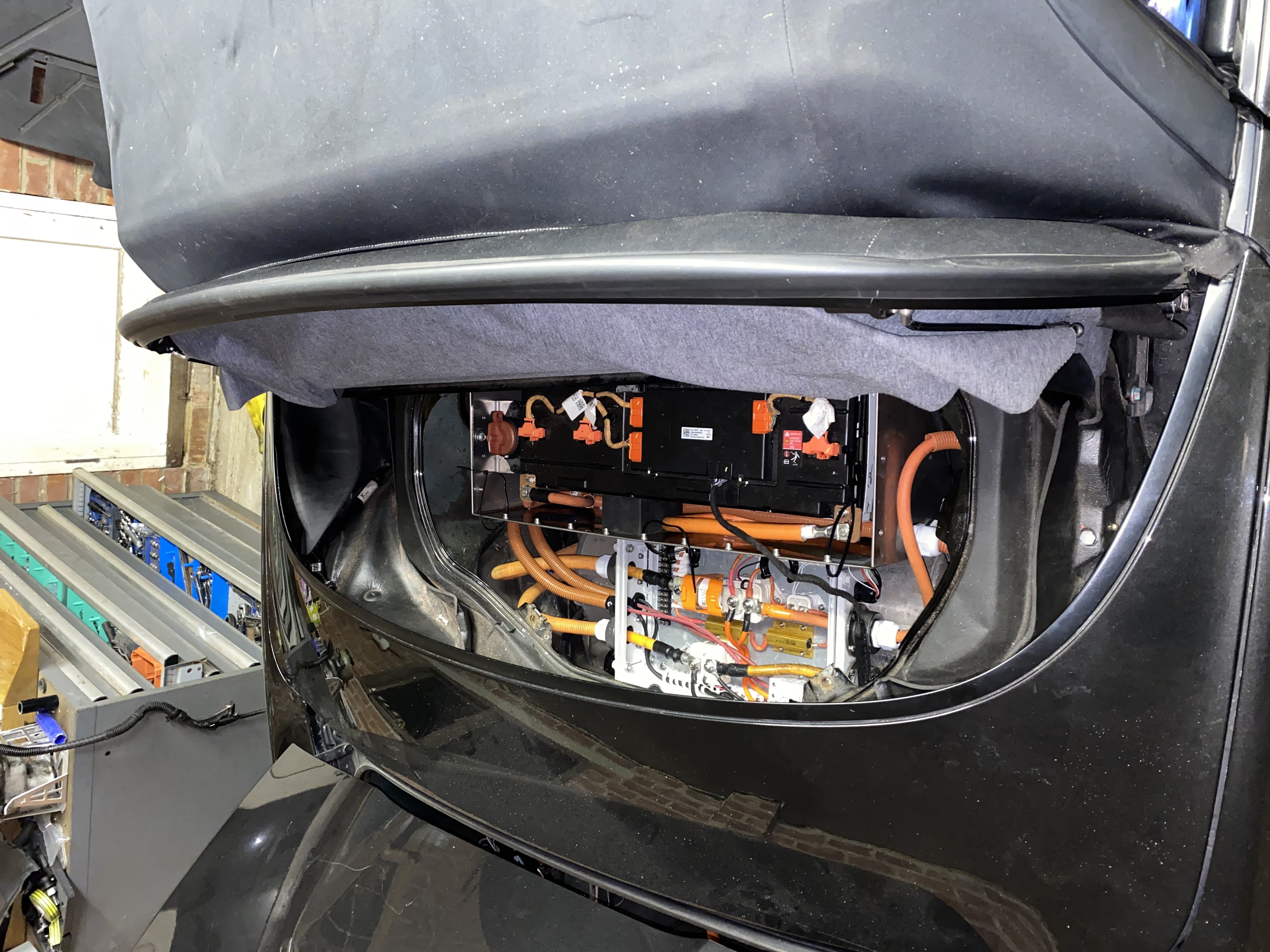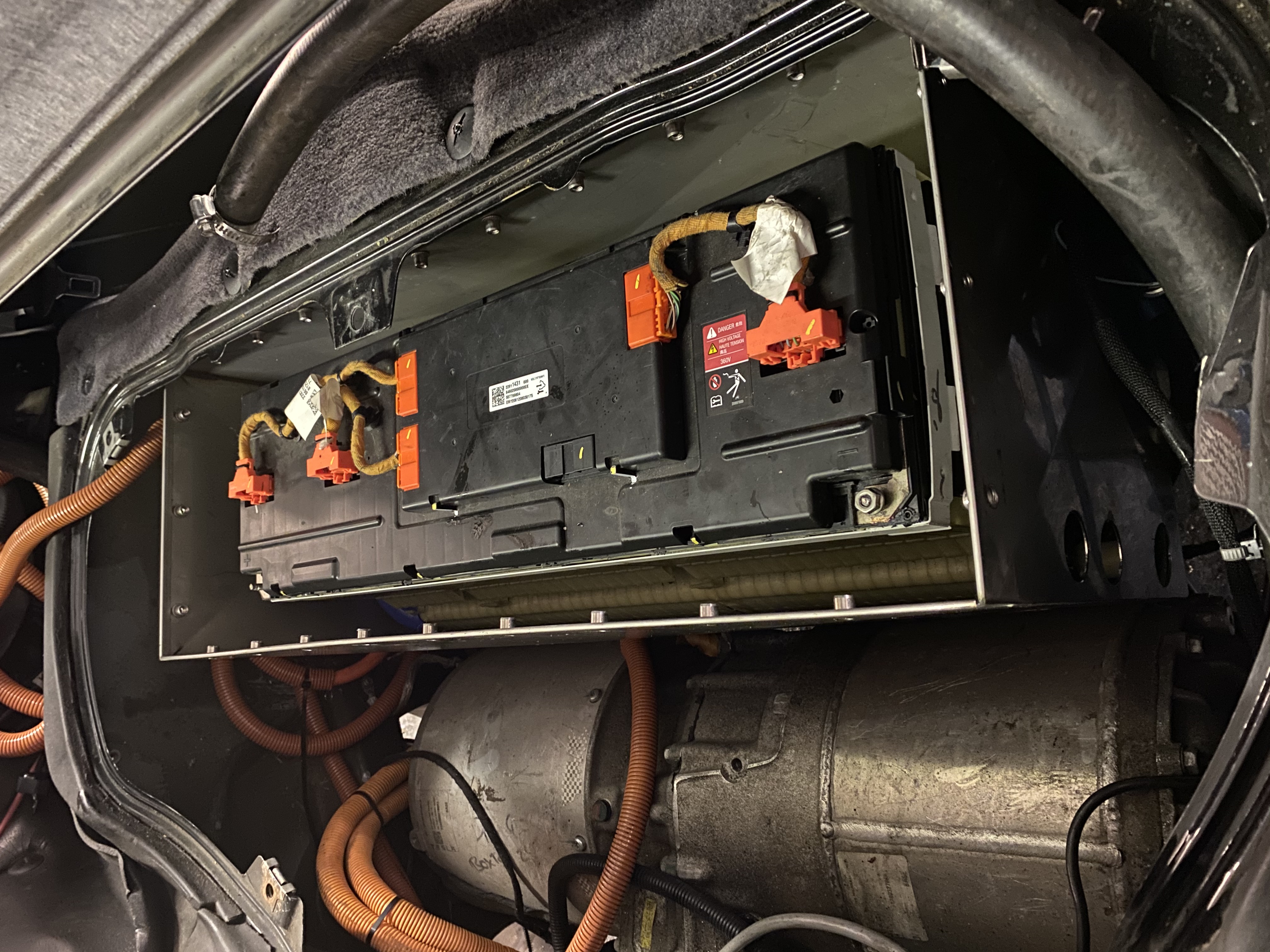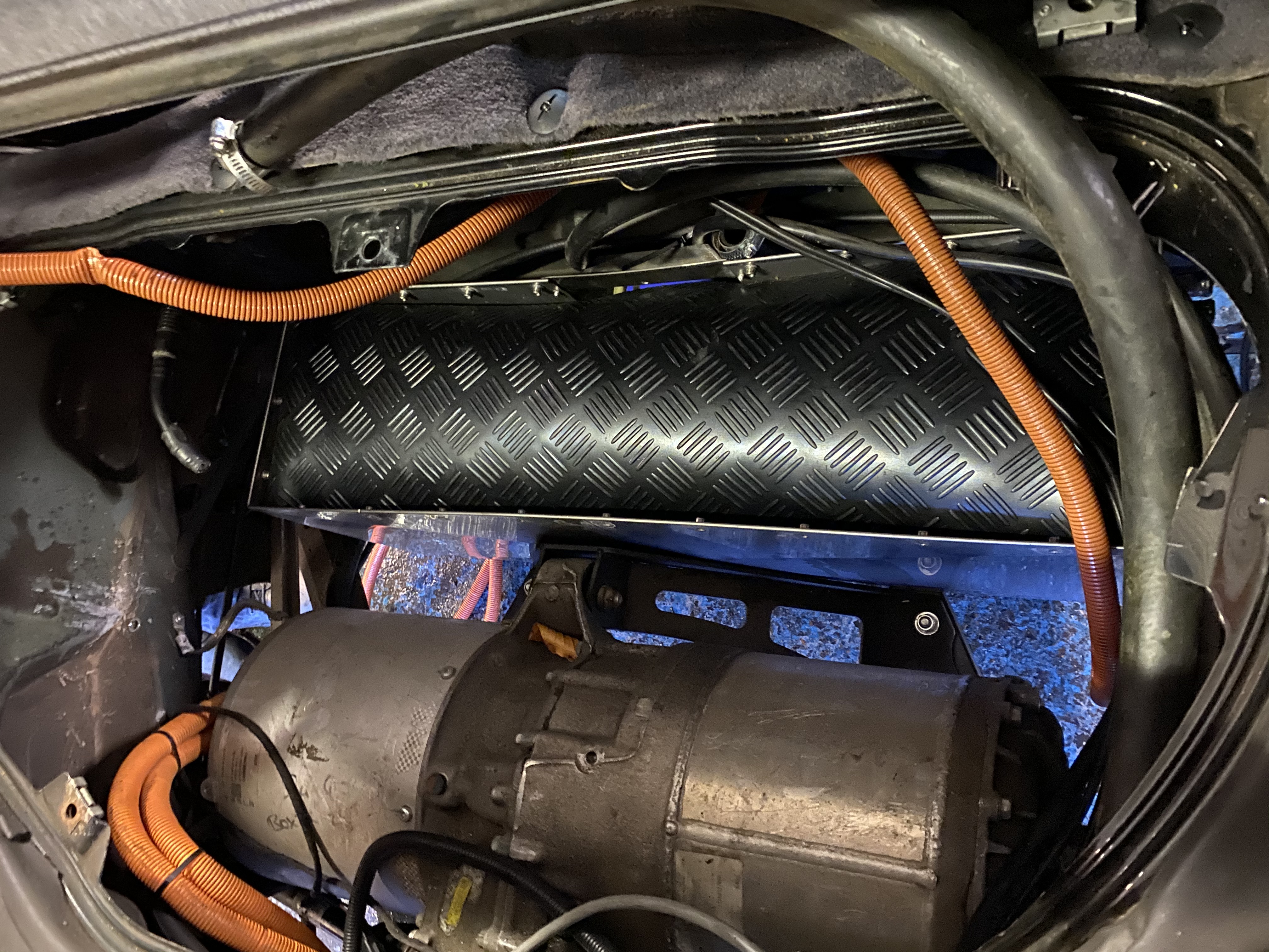 Underneath the car looks like this: The rear box houses the second mid-size battery brick and is welded into the boot floor of the car. I’ve not included a picture inside the boot at I’m still working on the rats nest of OEM LV wiring and waiting for my mini VCU to arrive. The Porsche DME motronic system still needs to see some signals in the car in order for the ignition and auxiliary power management to function, therefore going through the process of depinning and removing the unwanted ICE elements of the car’s harness is painstaking. Trying to make the conversion as clean as possible therefore didn’t want to stuff unwanted wires out of sight and forget about them.