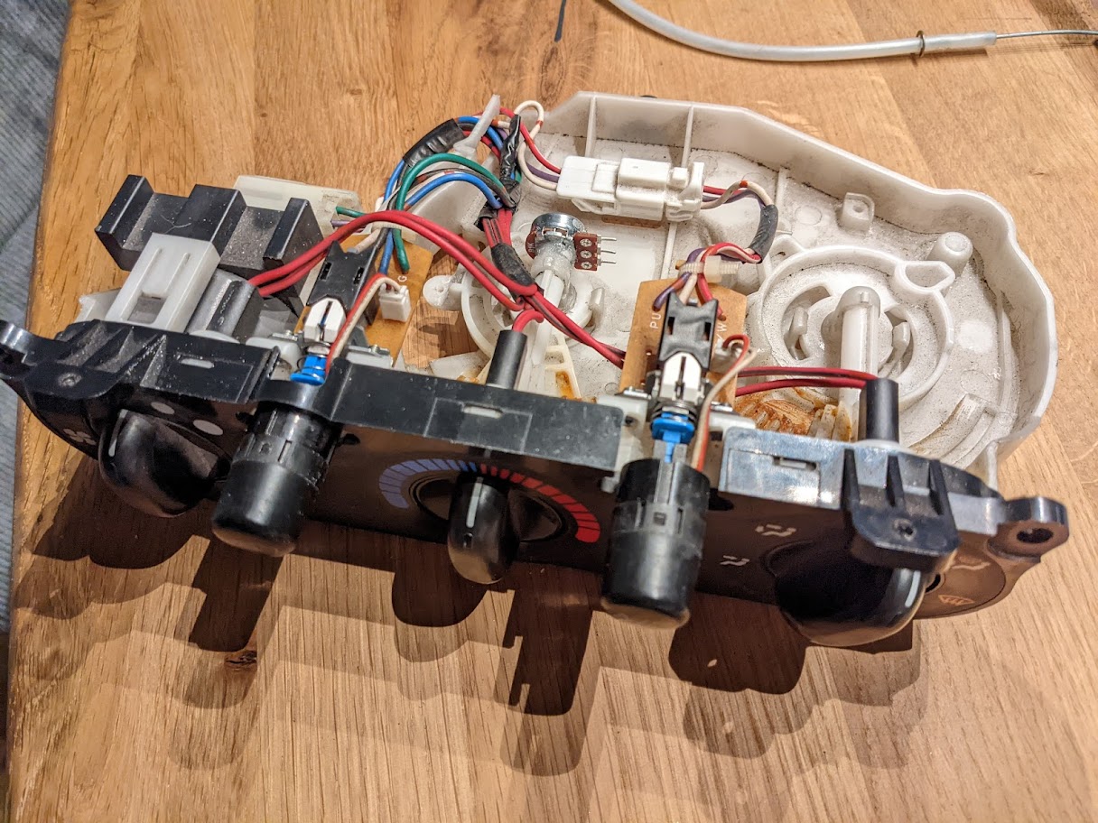 Something else i did was installed a potentiometer to my HVAC unit. Johannes had the idea of using a potentiometer and convert the value to the canbus so the AC or the heater run in variable stages due to the input.