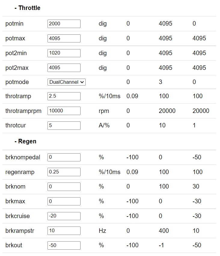 still running the above prams, going to increases off throttle regen and up throtcur/ power levels