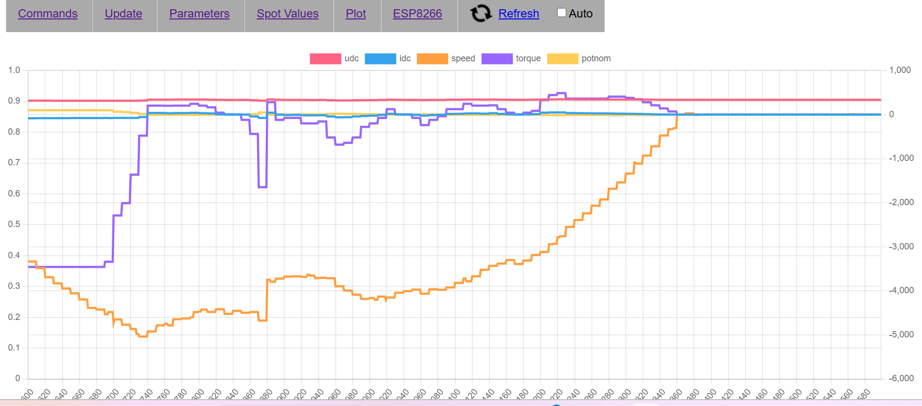 potnom reaches ~100% and dir flips correctly, so the throttle pedal and direction inputs are being read and scaled.