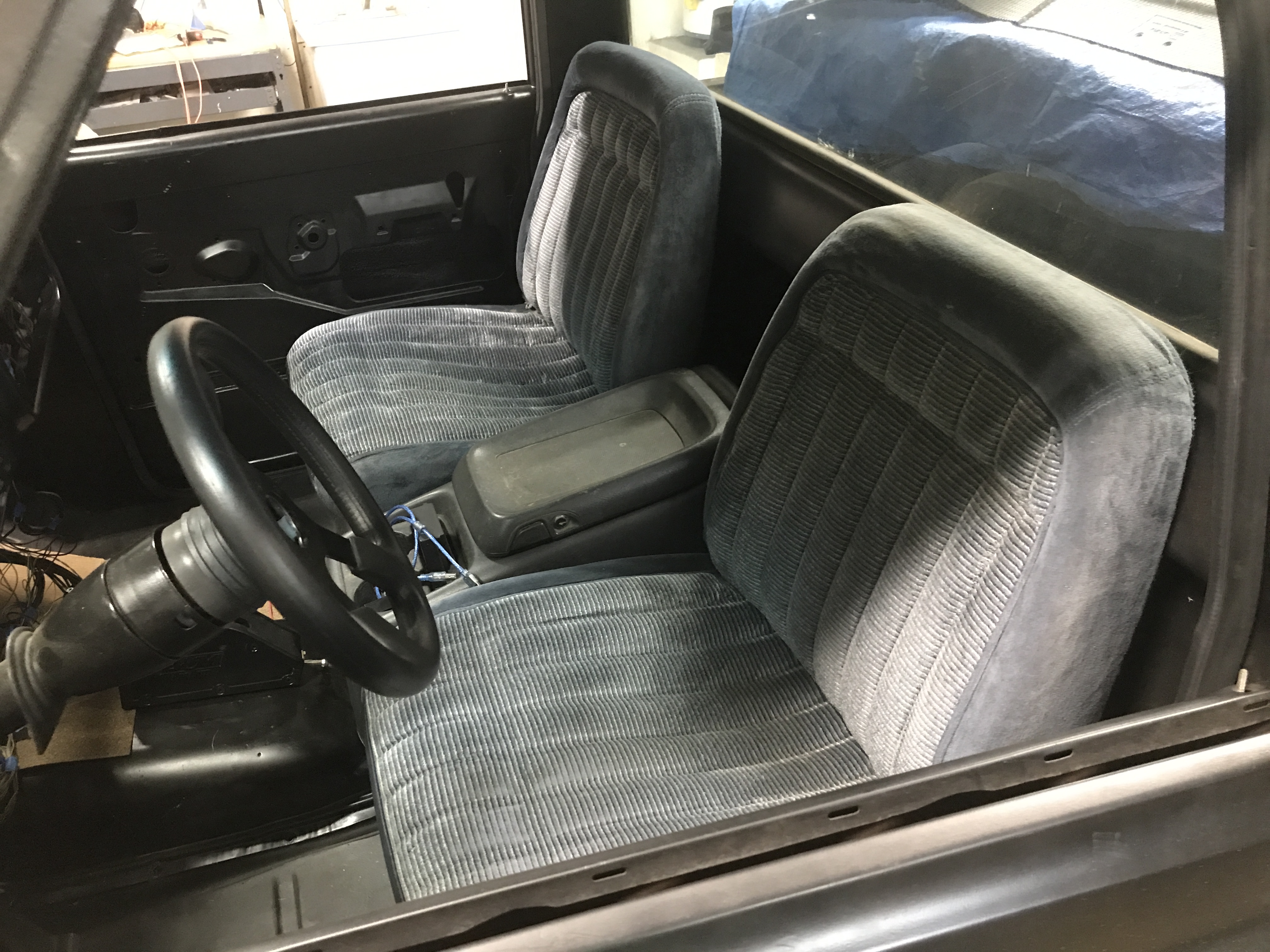 mounted the second seat, where my mobile soldering station used to be (but I won't miss it), and if the truck had wings (fenders) I could mount the battery where it needs to be and we would be able to attempt a maiden voyage, but for that I need another set of hands