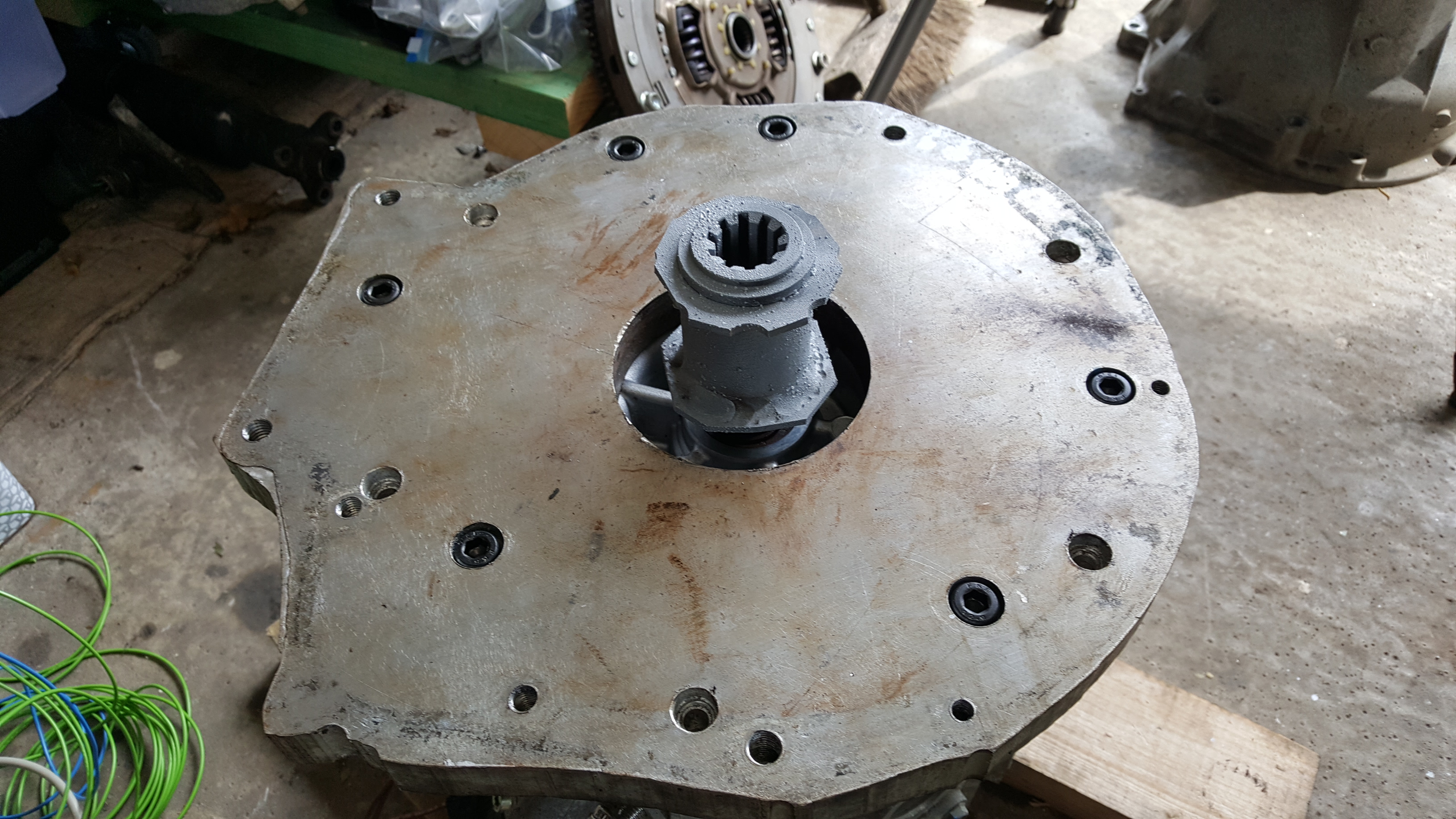 Yeah 25mm plate. Only had to cut the pilot bearing nose off the gearbox input shaft. about 8mm gap now.
