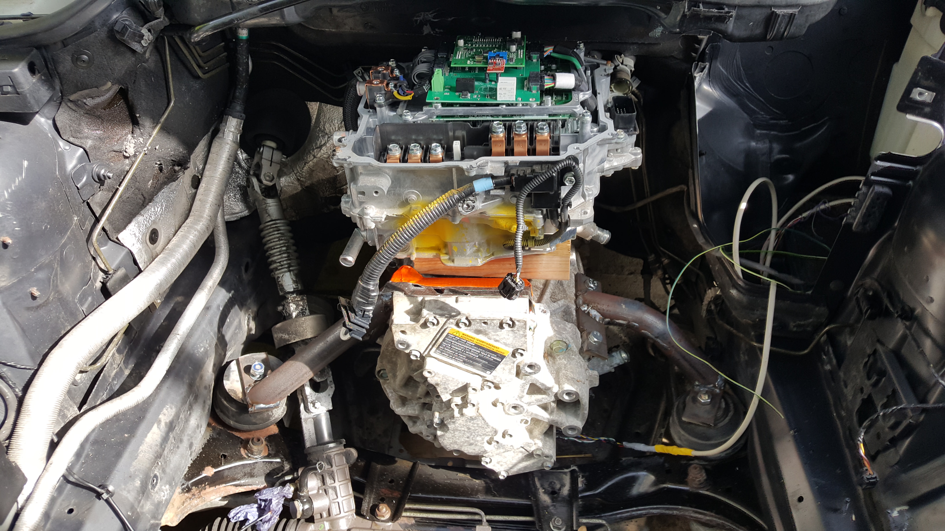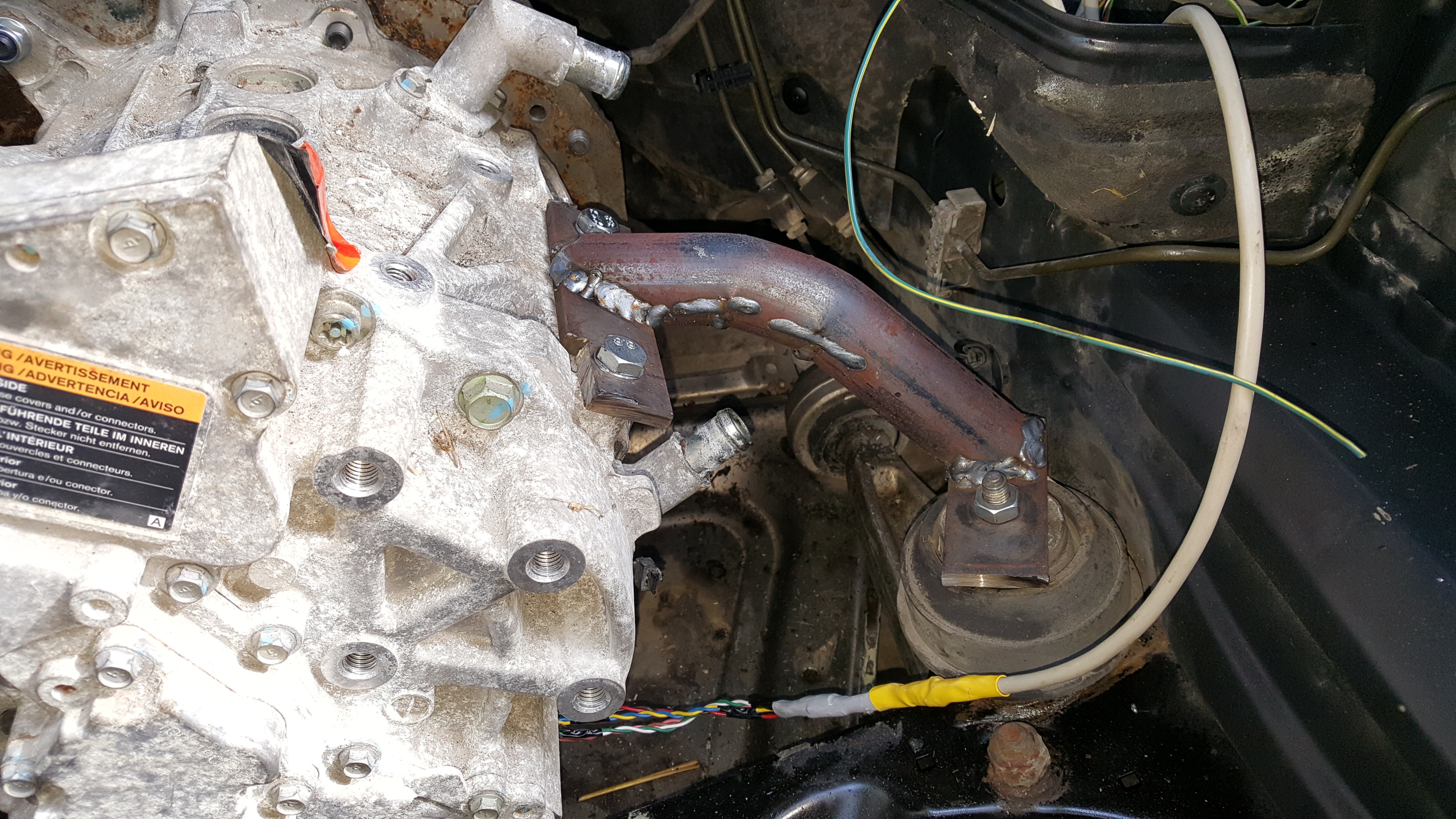 Some more progress. Motor now mounted and have started mocking up the positioning of the Lexus inverter.