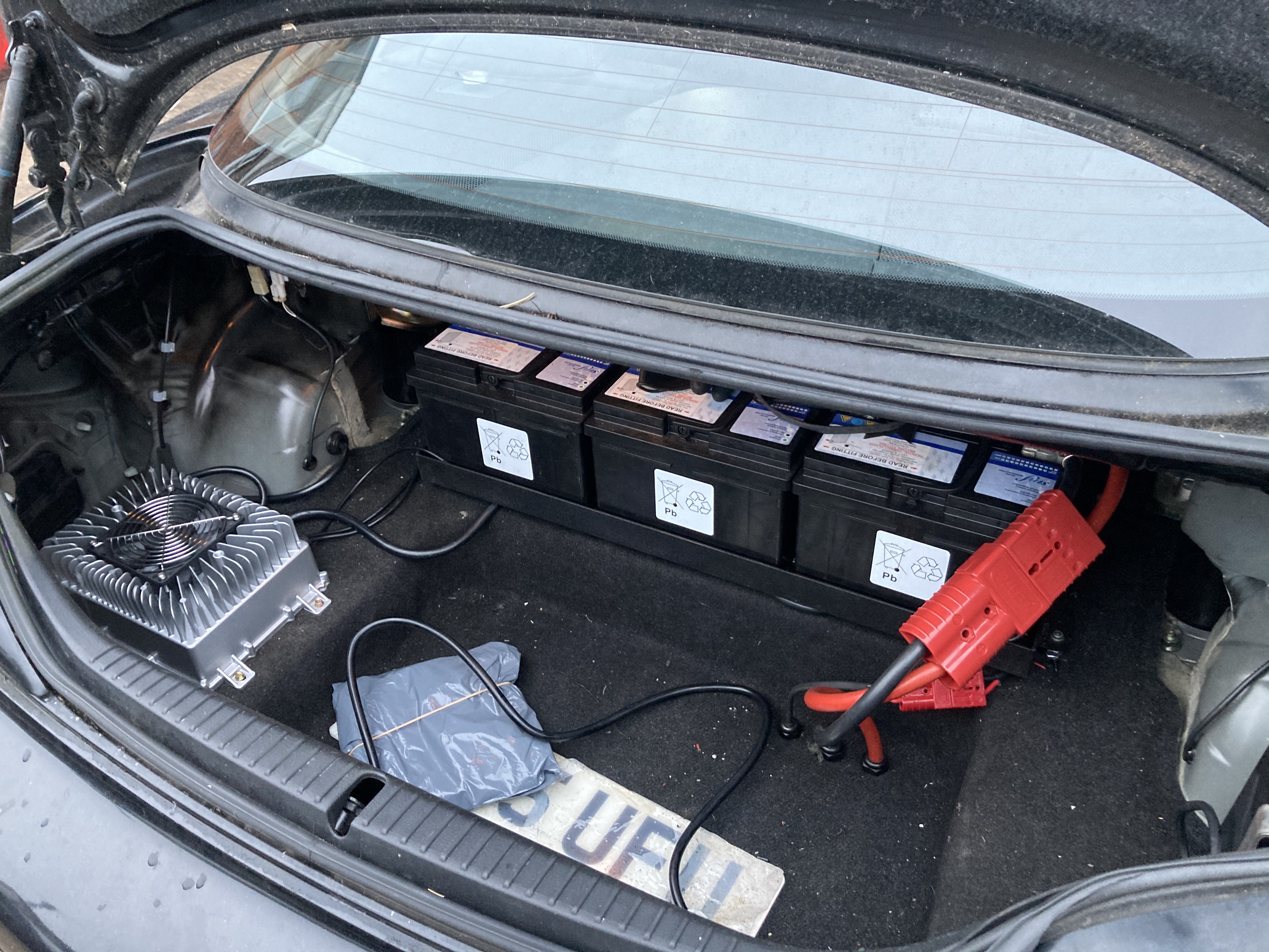 I have managed 33miles of testing including an 80mph cruise, battery soc is down to 52% so hopefully I should see 60 miles range which seems pretty decent for 22kw worth of used bmw phev modules given that dc motors aren’t exa the most efficient!