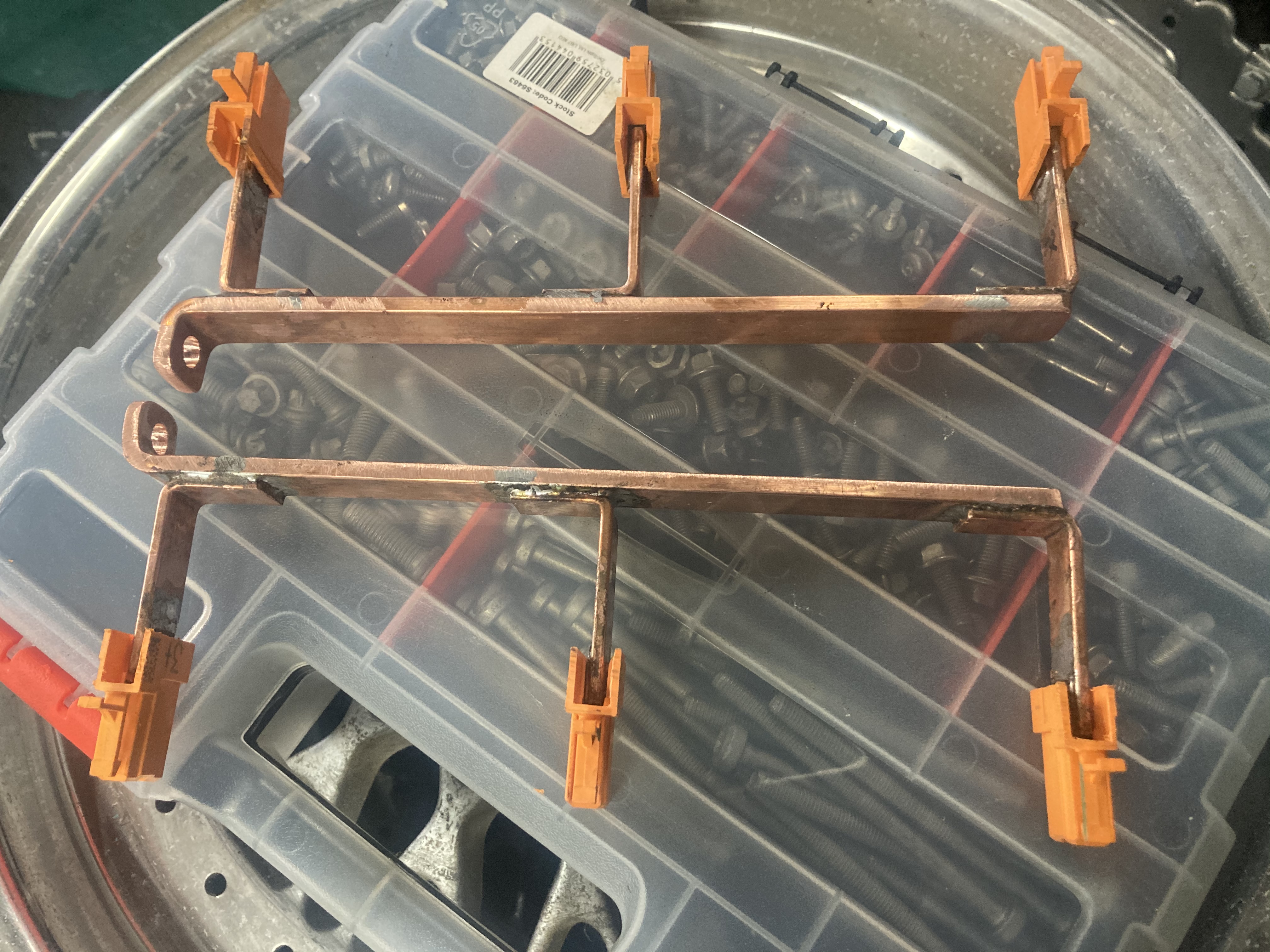 So work on the battery conversion has been ticking along, and the front pack is done and ready to be mounted, I’m using bmw330e modules 3 whole packs worth in a 3p5s configuration, paralleled at a module level with big bus bars using the original connectors soldered on, also paralleled at the cell tap level so each 3 modules is on one cell monitoring slave, have tested on a quick and dirty stripboard simp bms and everything is behaving