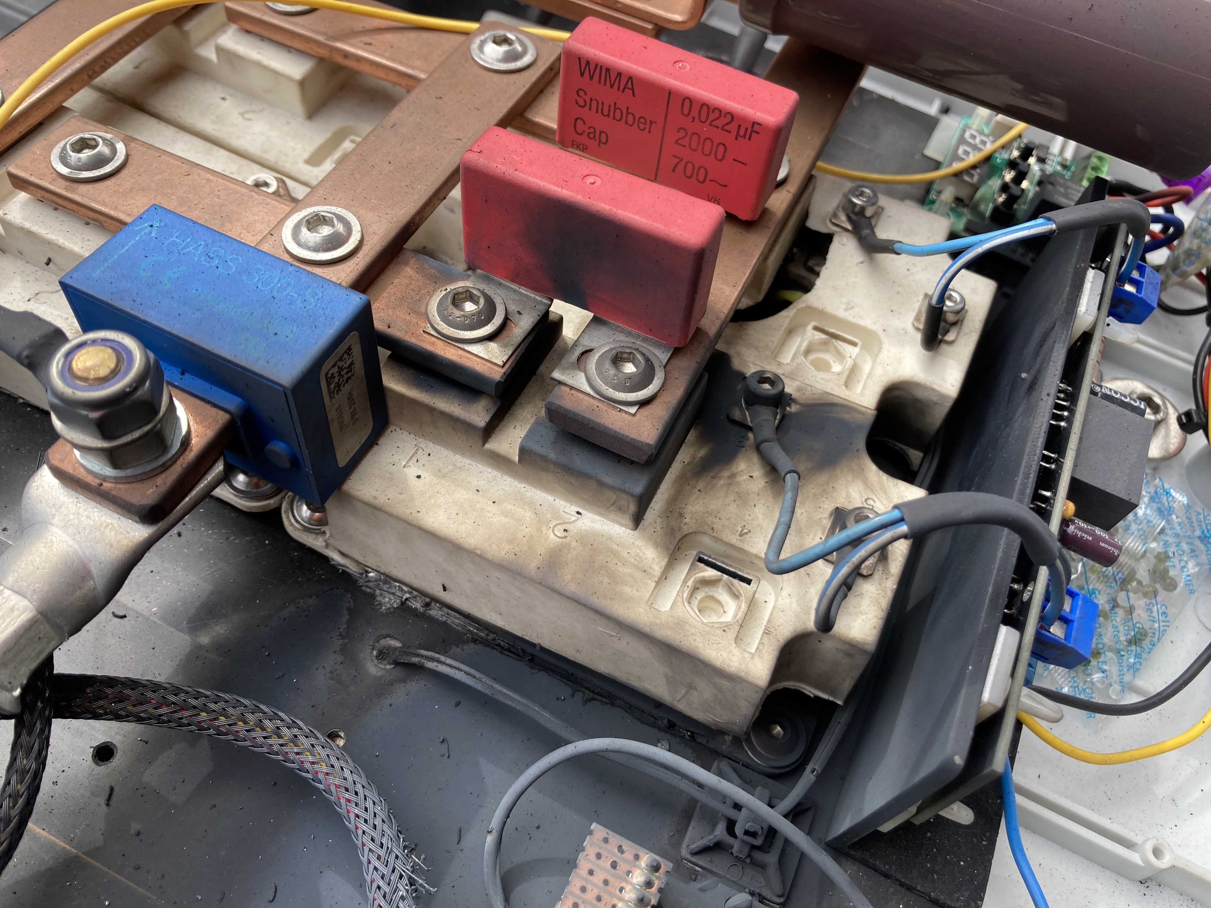 So, as a result of the magic smoke coming out I have decided to give making a dc controller from a Prius gen2 inverter a go, it would appear a few have tried and failed before me, specifically burning out the low side igbts, so I have a crazy idea about just using the all of (mg1&2) paralleled high side igbts for switching and then use a monster diode module mounted where the boost inductor would be as a freewheeling diode, effectively building a high side chopper rather than an half bridge, watch this space.,.