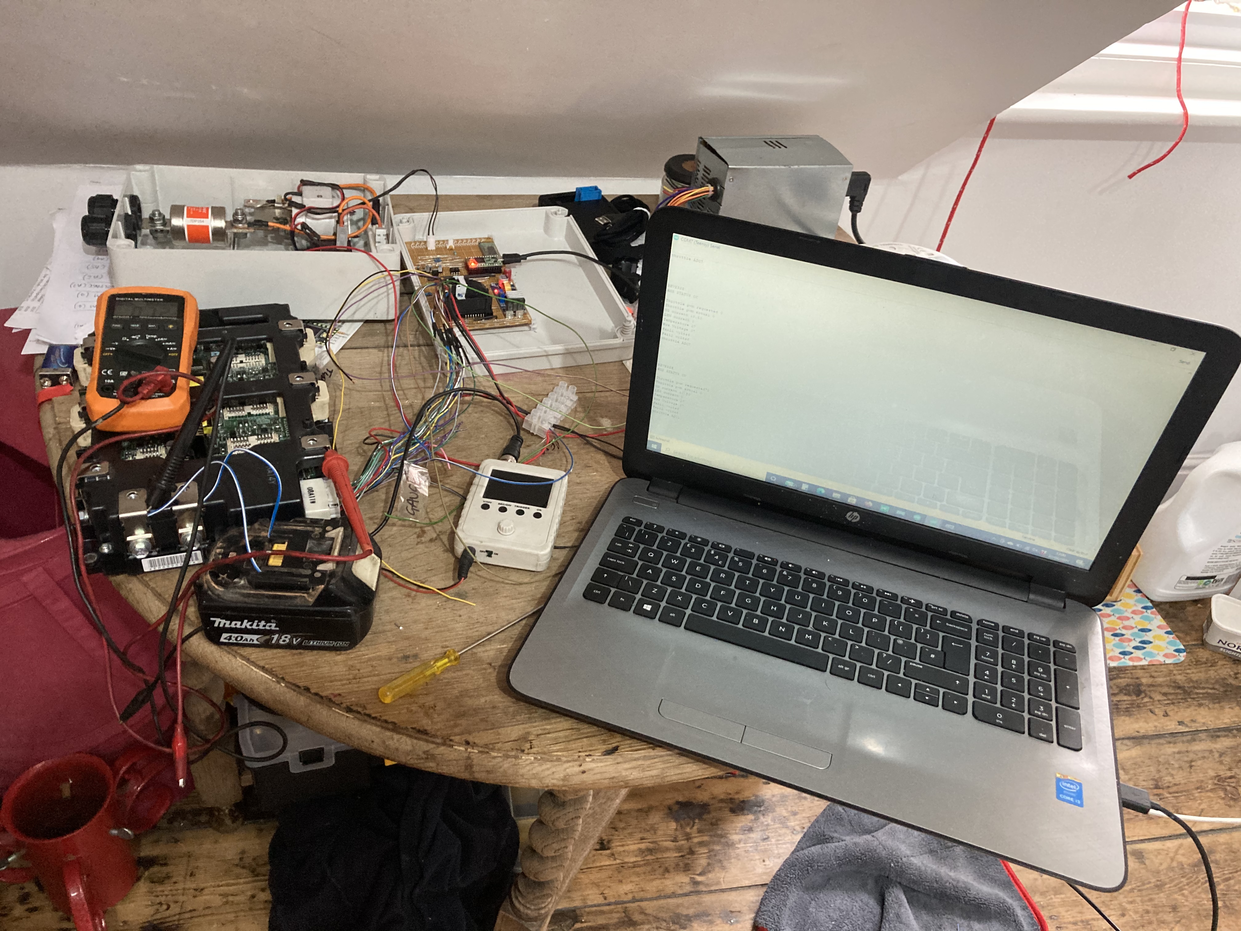 So a smallish update is probably due, just before my surgery I got a frame built to physically mount a gen2 inverter under the bonnet, and started a new box that’ll bolt on the side housing the positive contactor, precharge etc and the prototype board I have built to control it all. I have now got to the point of bench testing systems and things are going ok well I have control over mg1 and mg2, able to read current sensors, temperatures, voltages and fail pins, other inputs include a bms interlock, brake and reverse switch inputs, code includes different throttle ramps, rpm limits and current limits for forward and reverse modes, hopefully I will get to install into the car in the next couple of weeks